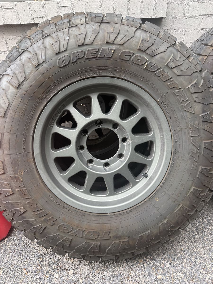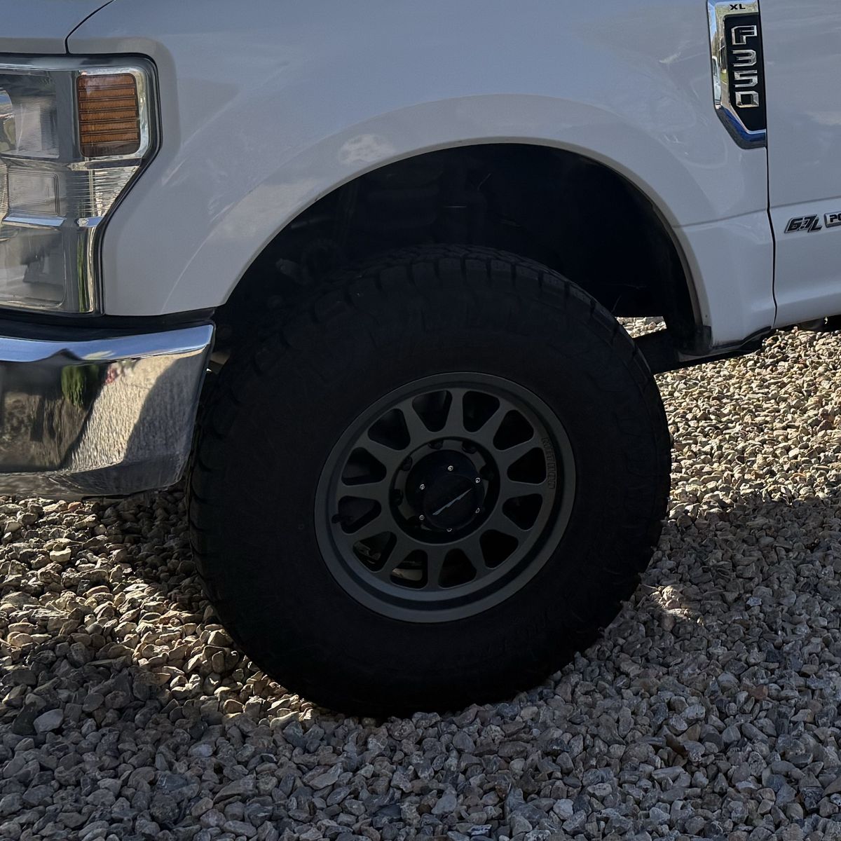 Perfect set up for on and off road. 35/12.5R17 LT Ford Super Duty only 1500 miles on tires and wheels Method 704HD bead grip wheels. New is $450 a wheel plus tax/shipping. Tires mounted and balanced with tpms was $2183. Roughly $4300 for package new. I ended up selling my truck so my loss is your win.