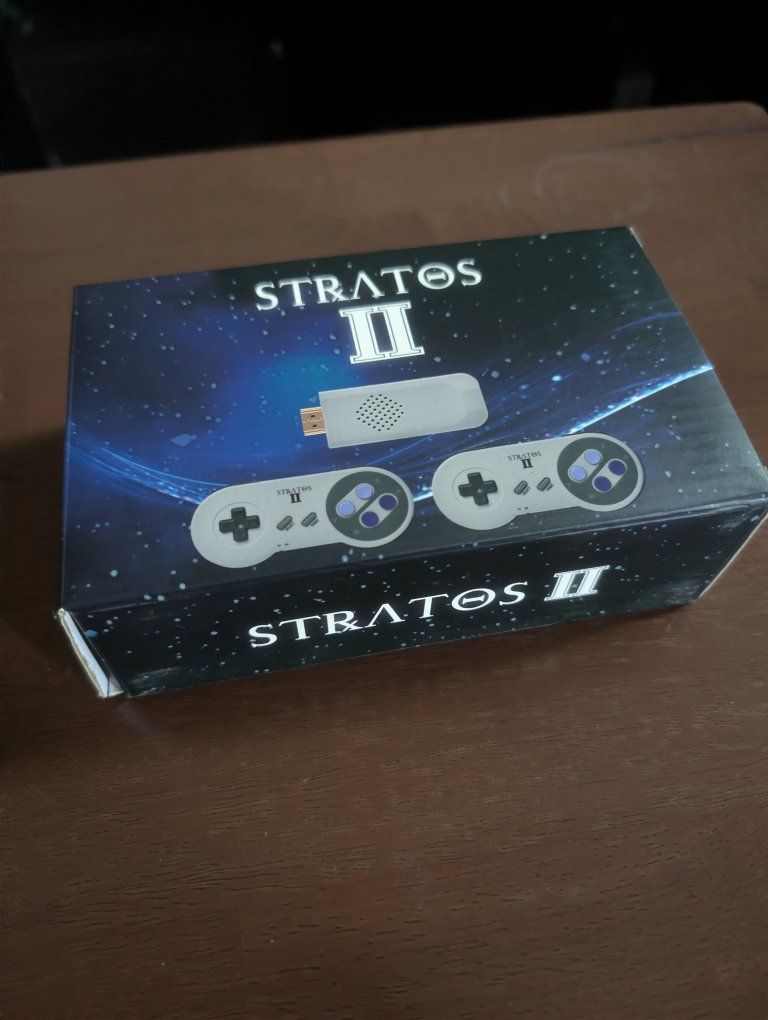 ZelleThe STRATOS II is a compact, HDMI-based retro gaming console designed for instant "plug and play" nostalgia. This system mimics the hardware of the popular SF900 series, specializing in 16-bit and 8-bit emulation. It comes with two 2.4GHz wireless controllers that feature the classic Super Nintendo (SNES) layout, complete with the iconic purple and lavender button color scheme. Key Features HDMI Connectivity: Plugs directly into any modern TV or monitor; no bulky console or messy cables required. Wireless Multiplayer: Two 2.4GHz wireless gamepads allow for responsive, lag-free gaming from the couch. Pre-Loaded Library: Typically includes 1,500 to 4,000+ classic games from the NES and SNES eras. MicroSD Support: Features an internal or accessible SD card slot, allowing users to add their own game ROMs easily. USB Powered: Draws power directly from your TV's USB port or a standard 5V adapter.