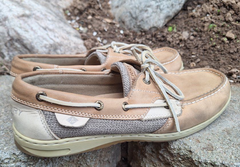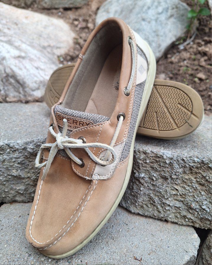 CashAppGreat pair of Ladies Sperry Top-Sider 2 Eyed Bluefish Leather Boat Shoes! Comes in size 11m. They are perfect for a variety of occasions, from casual outings to more formal events. The almond toe shape, slip-on closure, and water-resistant leather fabric make them a versatile and stylish choice for the modern woman. Whether you're heading to work, running errands, or enjoying a day out on the water, these Sperry Top-Sider boat shoes are a must-have addition to your wardrobe. Lots of life left in these fellas. Please see photos for closer details, thanks for looking!