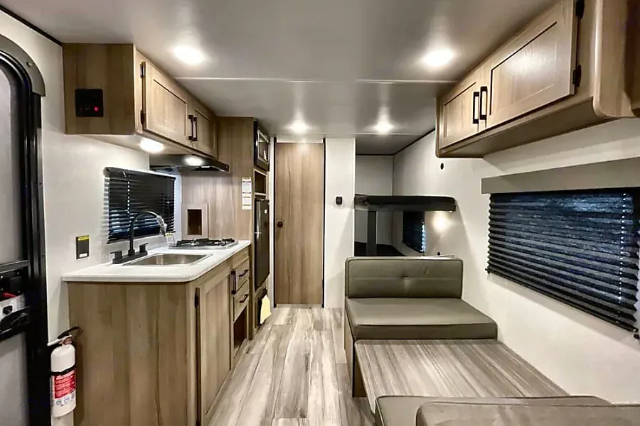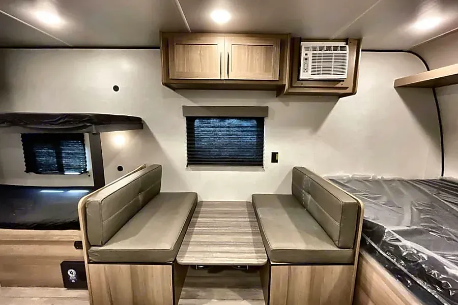 The smart layout makes the most of every inch, with a convertible dinette that easily transitions into a bed—perfect for meals, relaxing, or winding down after a day of adventure.
