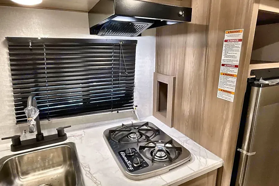 Includes a compact bathroom with toilet, sink, and shower, plus RV-safe toilet paper and septic tabs so you can camp comfortably anywhere.