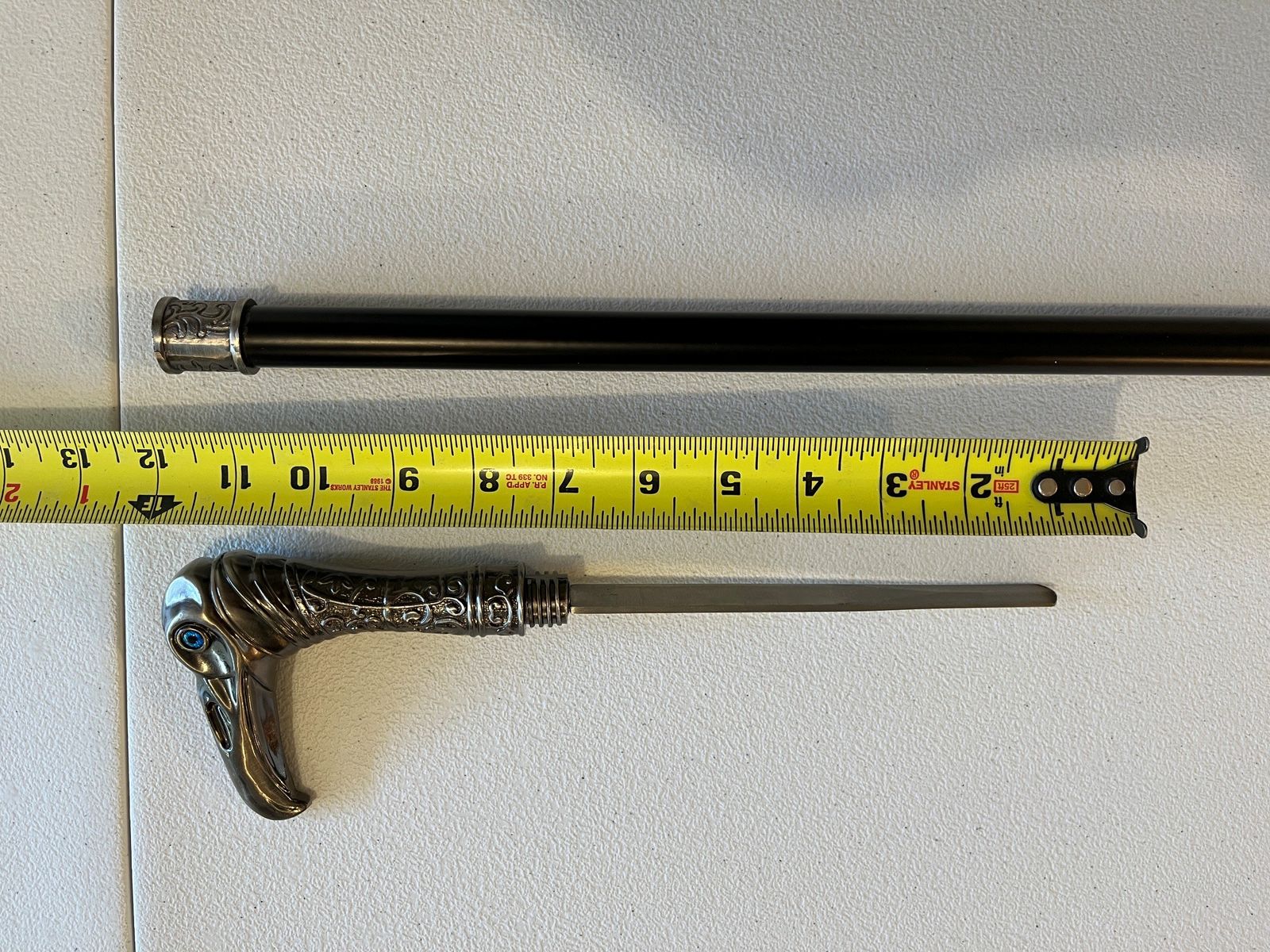 VenmoCane with intricate silver handle which is attached to a dagger that is accessed by unscrewing the handle to the cane. Cane is approximately 36" and the dagger is approximately 6". Excellent condition. Price $45 or best offer.