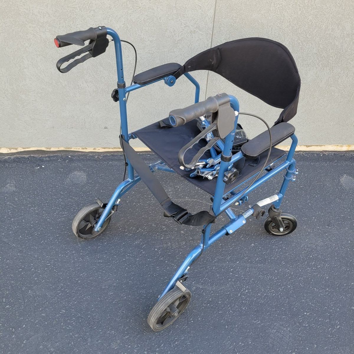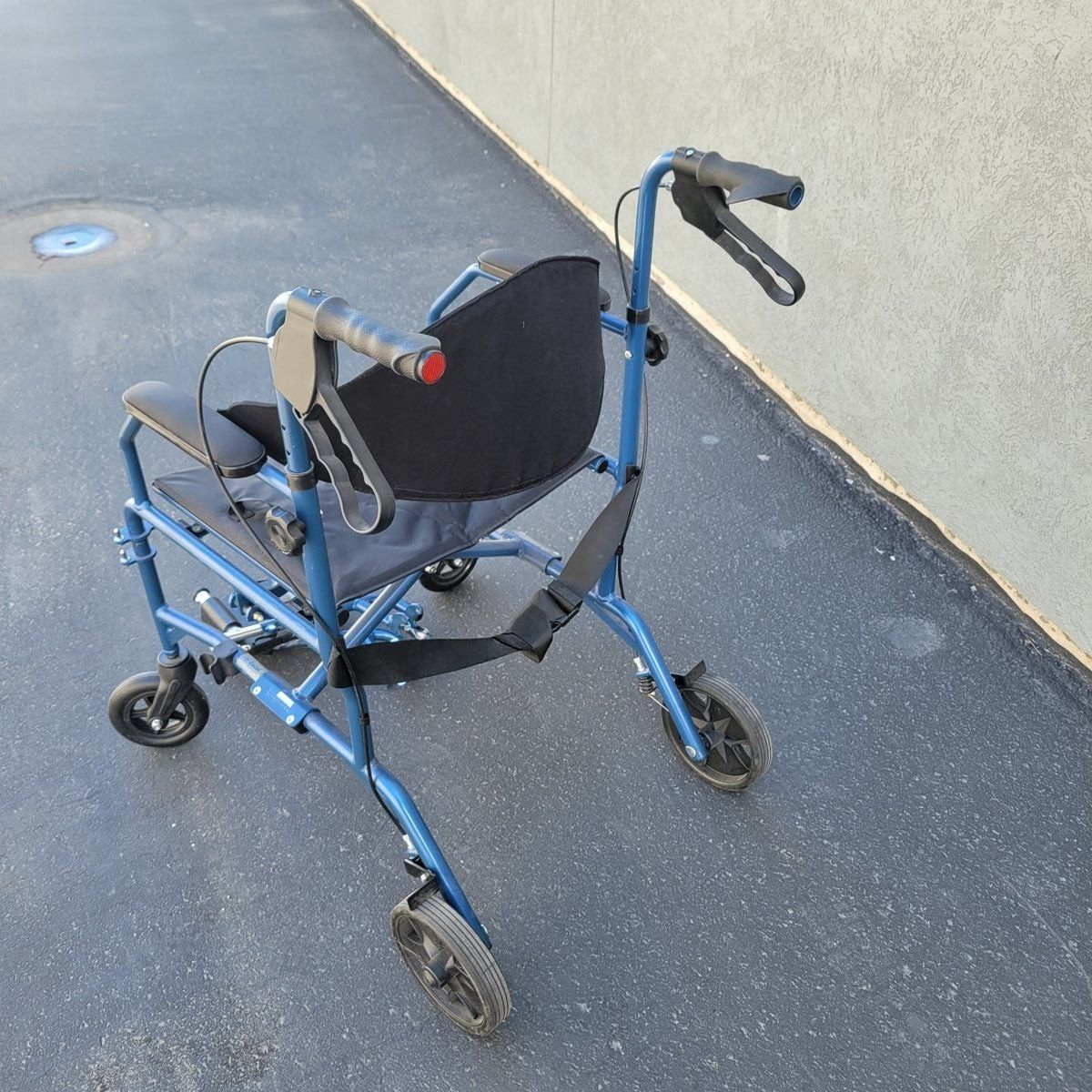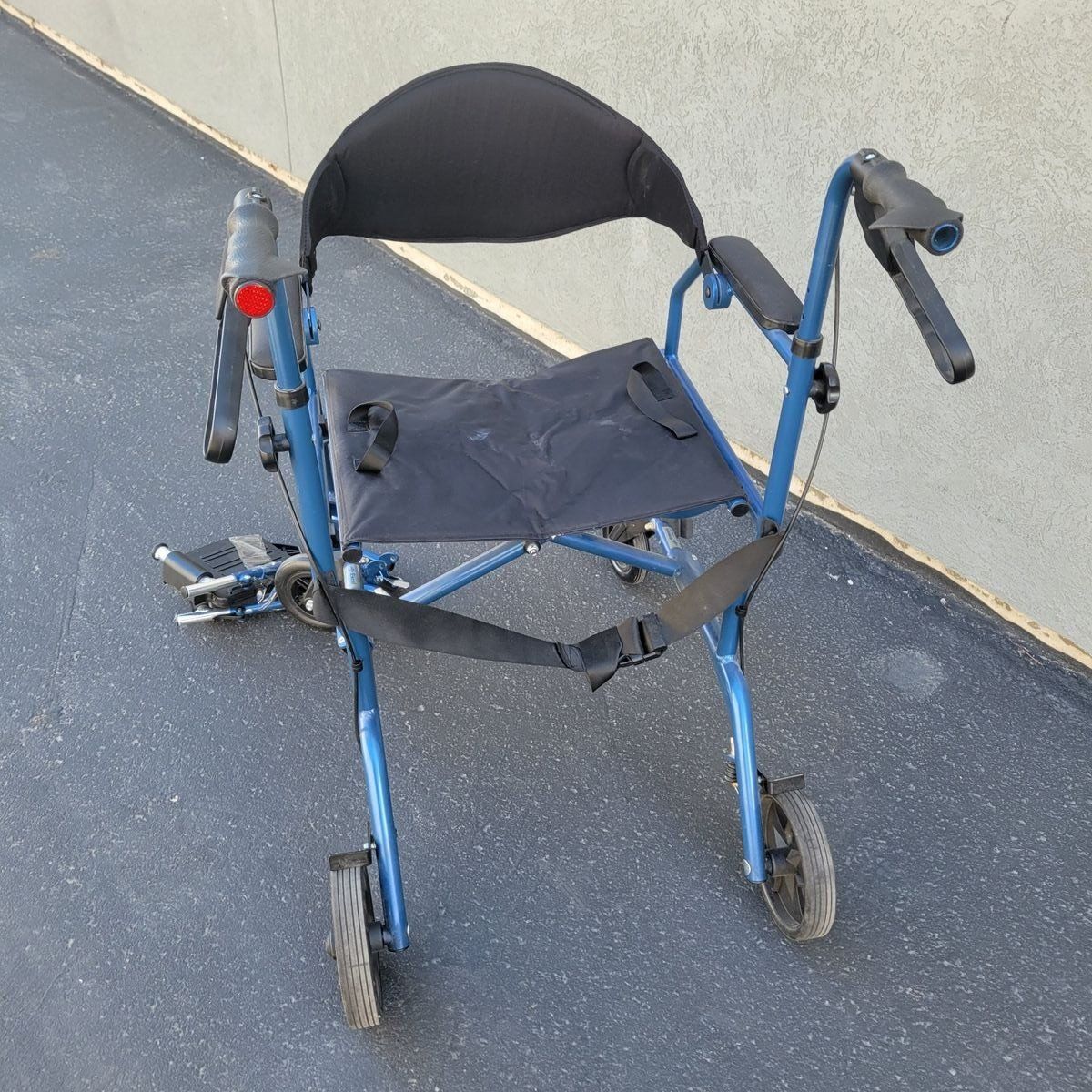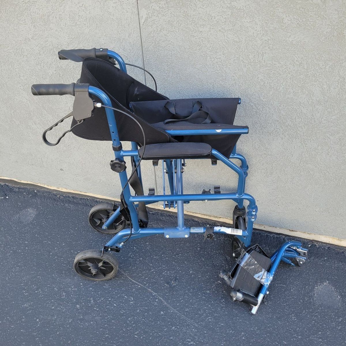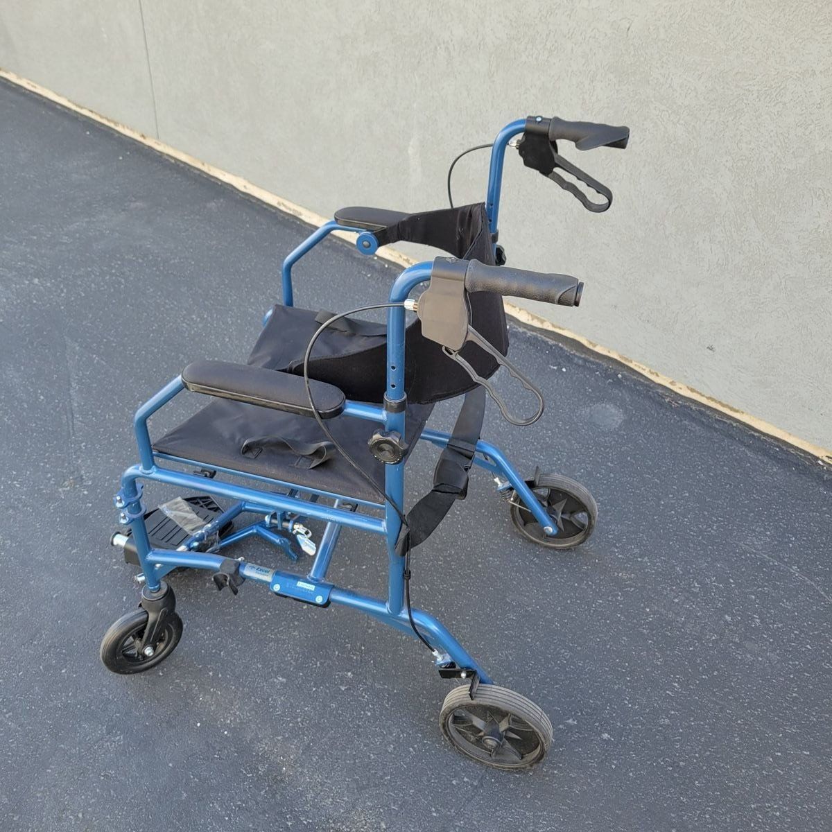 Medline 2-in-1 transport chair and rollator walker (Model MDS808200TR) — designed to function as both a mobility walker and a transport chair when needed. Can be used independently as a rollator, or converted for assisted transport with push handles and hand brakes. Features a comfortable seat, back support, armrests, and detachable footrests (included). Folds easily for storage or travel. 19” seat width Weight capacity: 250 lbs In good pre-owned condition with normal wear. Rolls smoothly and all functions work as intended. Perfect for travel, recovery, or anyone needing flexible mobility support.