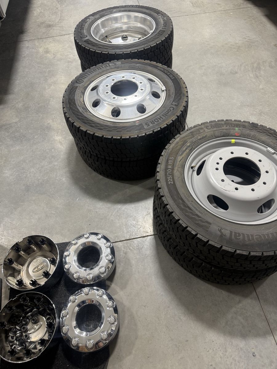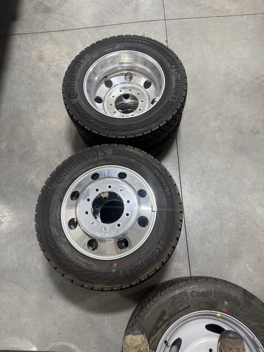 6-255/70/19.5 Continental HDR5 with polished aluminum wheels and caps