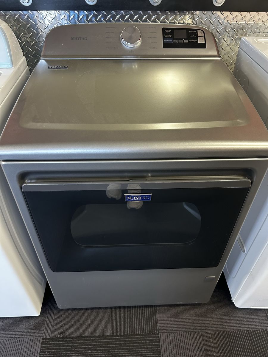 Maytag gas dryer 7.4 cu ft heavy duty mixed loads whites towels quick dry delicate bulky items normal time dry air only damp dry signal remote start WiFi extra power wrinkle prevent etc..Brand New/Open Box. 45 day warranty, delivery/install available.