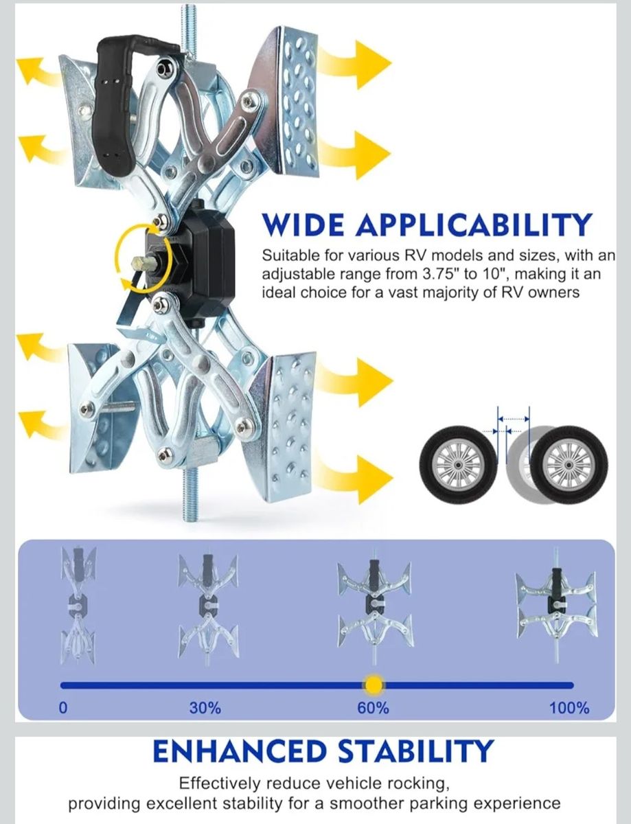 VenmoWide Applicability: Extending to fit wheel distances ranging from 3.75" to 10", RV wheel chock stabilizer cater to a broad range of vehicle types, including travel trailers, Class A motorhomes, fifth-wheel trailers, and toy haulers.
