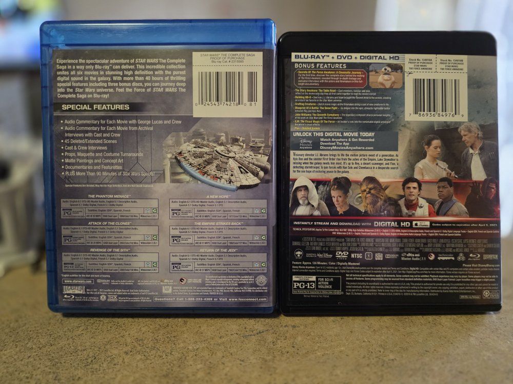 Star Wars The complete saga with special features Star Wars The force awakens blu-ray +dvd+ digital HD 25$ obo for both