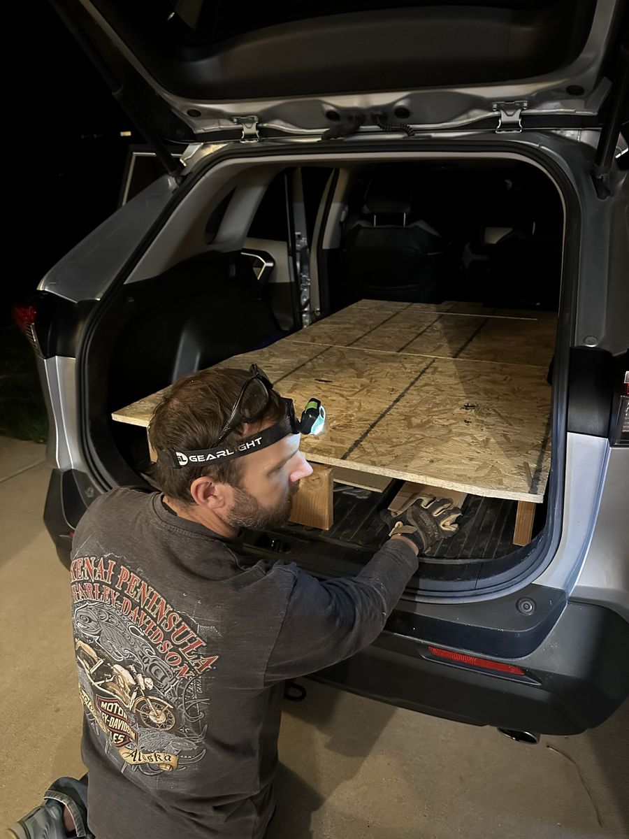 Built this for my wife. She loves it but now no longer uses it. Goes from rear door all the way to back of front seats. 2 pieces with a folding portion. Will stack in the trunk so you can still use the back seat. Covered with fabric material. Mostly horizontal. Maybe a slight incline. Selling for cost of materials. More pics to come. For a 5th Gen RAV4. 2019-2025. May fit others.