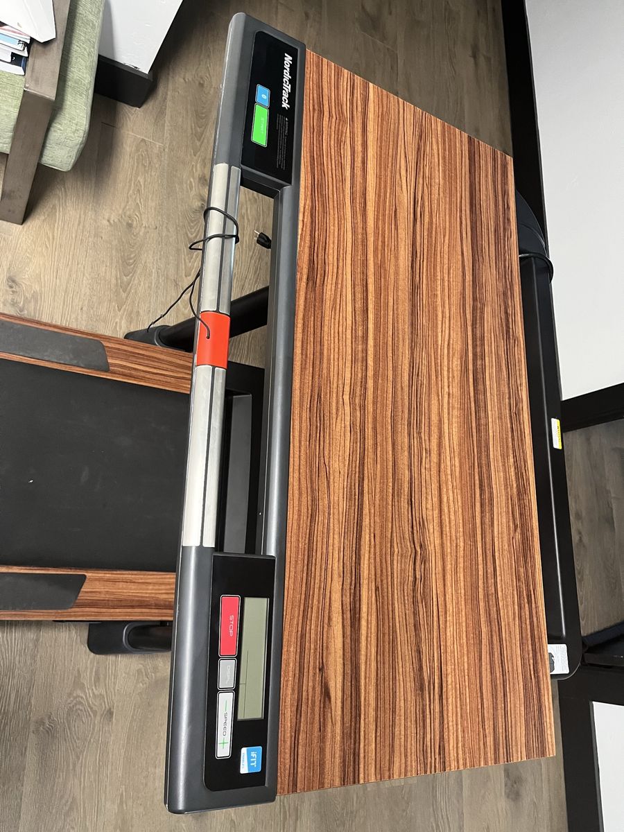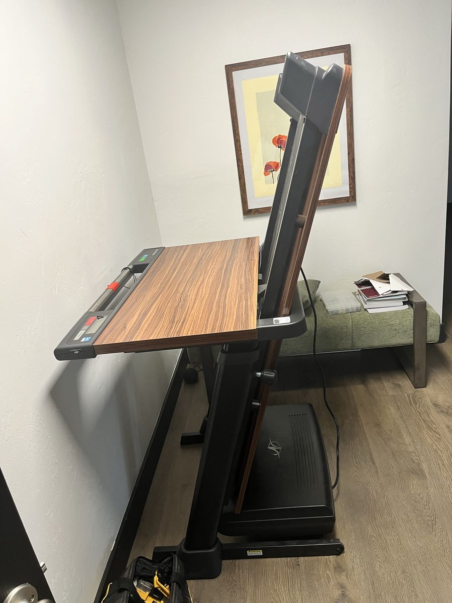 VenmoNordictrack Adjustable height desk and treadmill to keep you moving while you work or read or scroll! The desk swings out to allow for full treadmill access which is better for running. The treadmill also folds up and can be stored standing saving room in your space! This beauty has had very light use and is ready for a new home! It has wheels to roll it when the treadmill is folded up but you will need muscles and a truck to haul this thing! Located in Alpine
