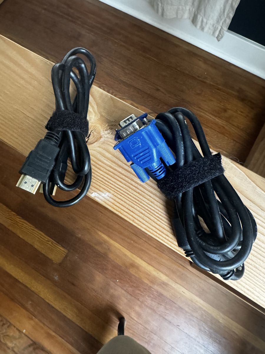 Can be used for either tv or monitor comes with plug, hdmi, and blue vga cord. No issues just needs to go