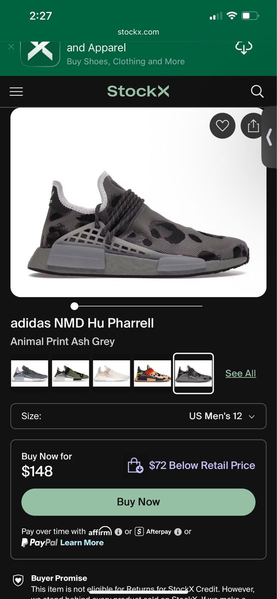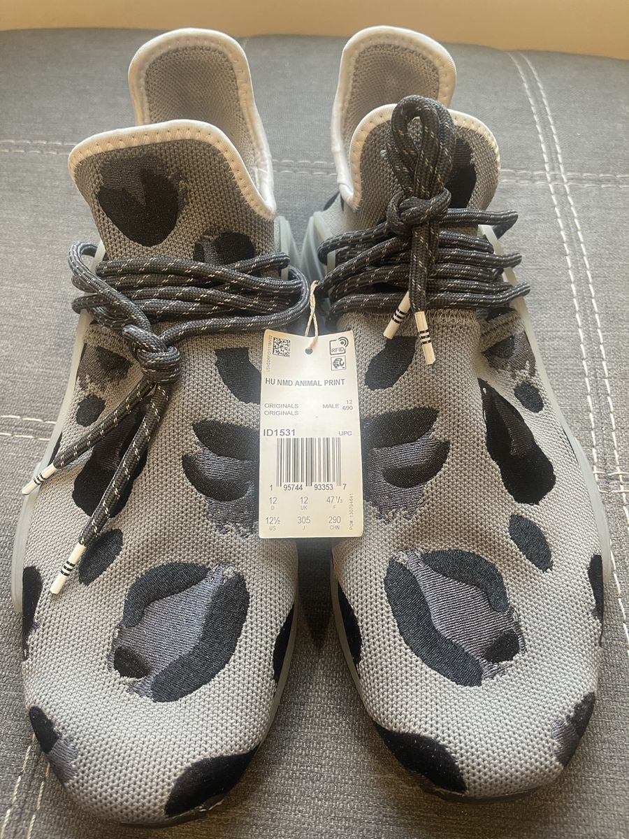 ApplePayPharrell Williams x Adidas NMD in bold animal print Ash Grey. Brand New w/Tags . Eye-catching and comfortable. $75 OBO – Salt Lake City pickup.