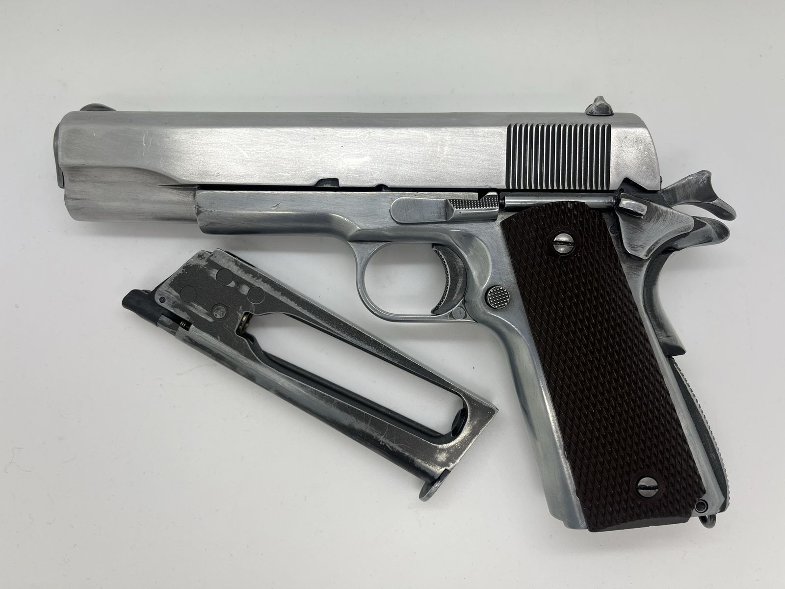 Airsoft 1911, takes 6mm BBs, comes with holster. The mag is leaky but the rest of the gun works. Asking 130