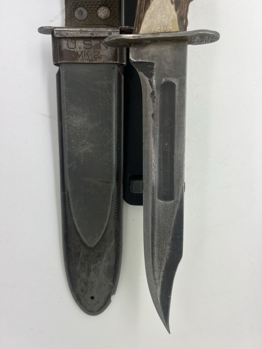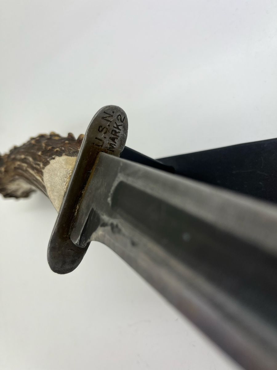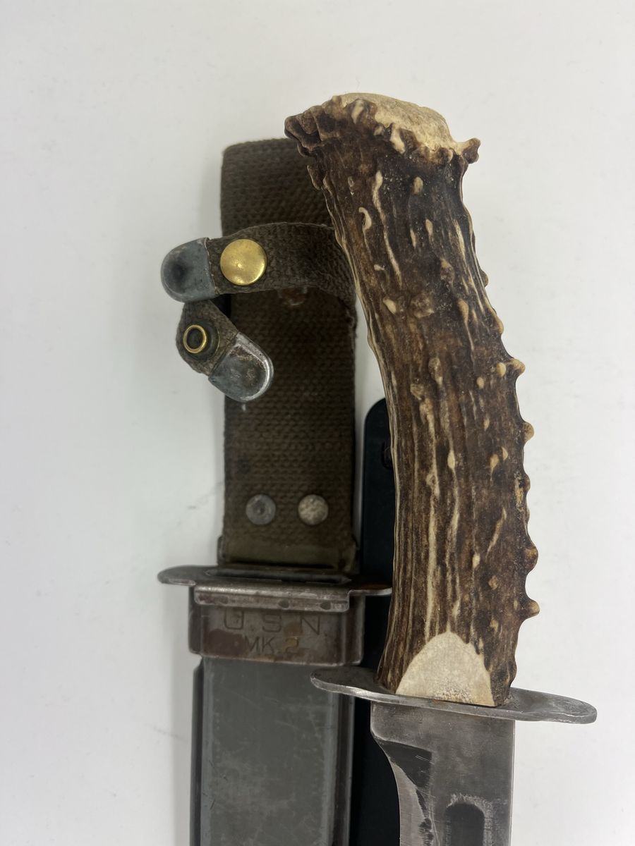 WW2 kabar style knife with a custom elk antler handle with original sheath