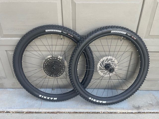 ApplePayThis is a set of brand-new take-off Syncros X-30S aluminum wheels (30i), 29", Boost (148x12/15x110) that came off of my new Genius 940. The tires are Maxxis Dissector 2.4's ($88 a piece on Amazon) and the rotors are center-locking Shimano RT-30 rotors ($50 a piece on Amazon). The tires and rotors alone are worth $280.