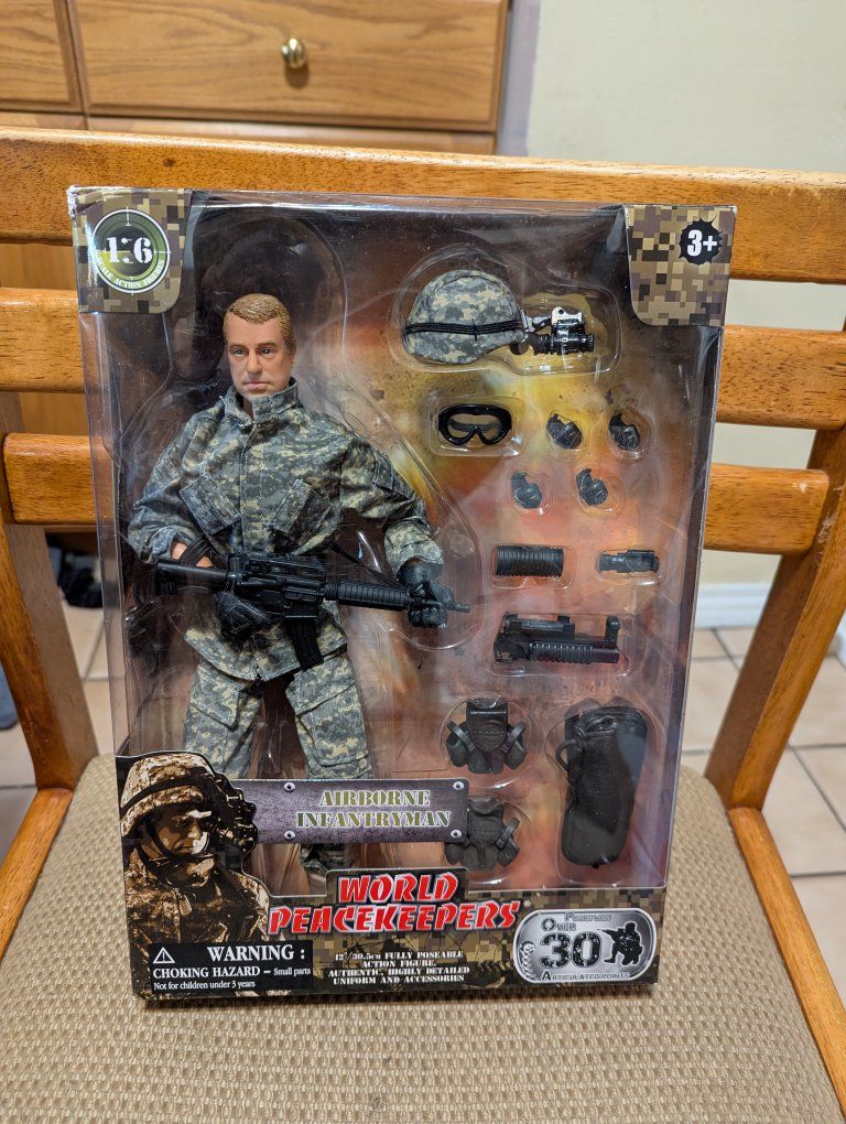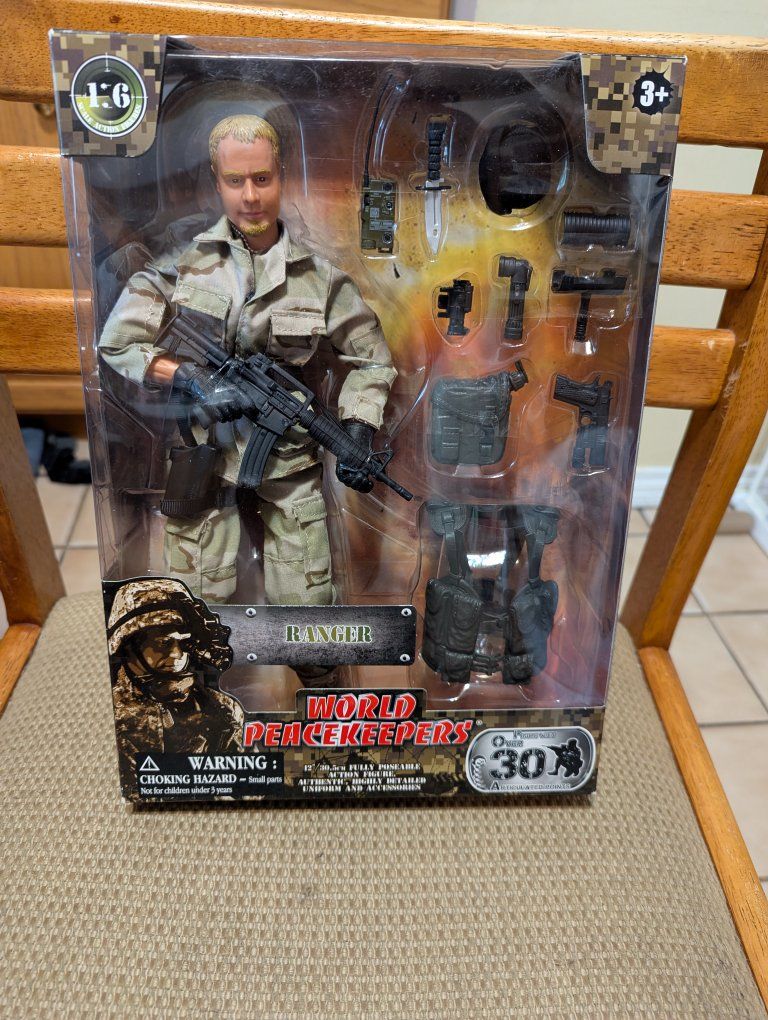 VenmoScale 1:6 = 12". Airborne infantry man and ranger. Over 30 articulated points. Brand new still unopened. $40 / figuring.