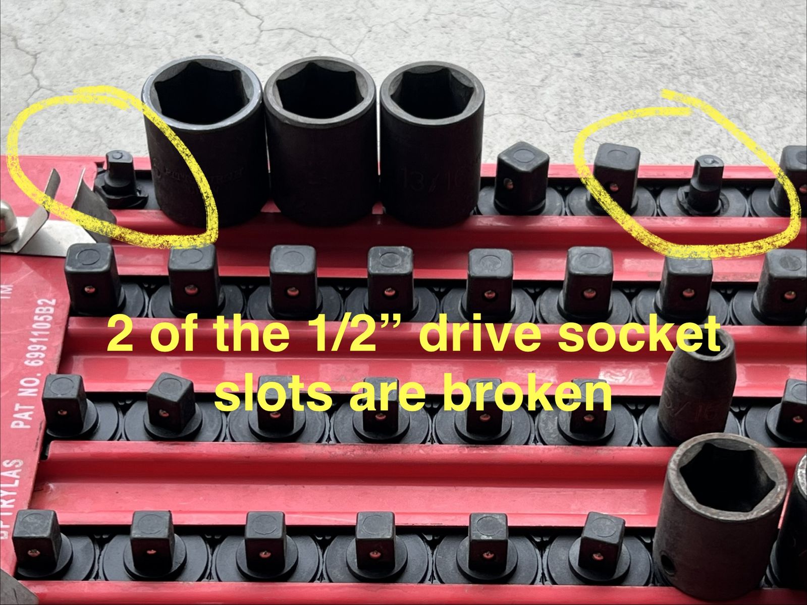 Note: 2 of the 1/2” drive socket slots are broken (see last photo), I’ve set the price low because of this.