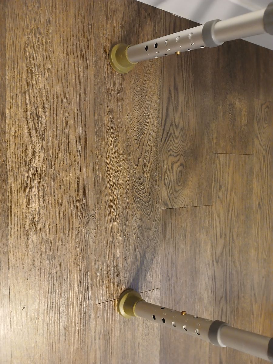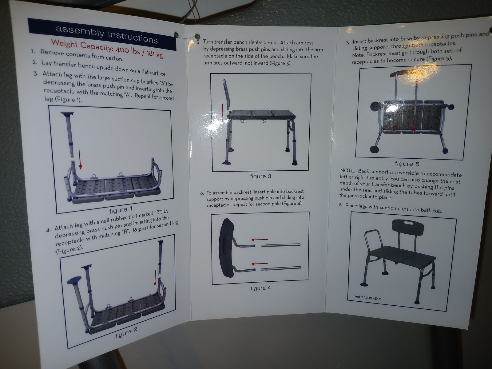 User instructions still attached to bench back and original protective plastic still on armrest. Leg heights are highly and easily adjustable.