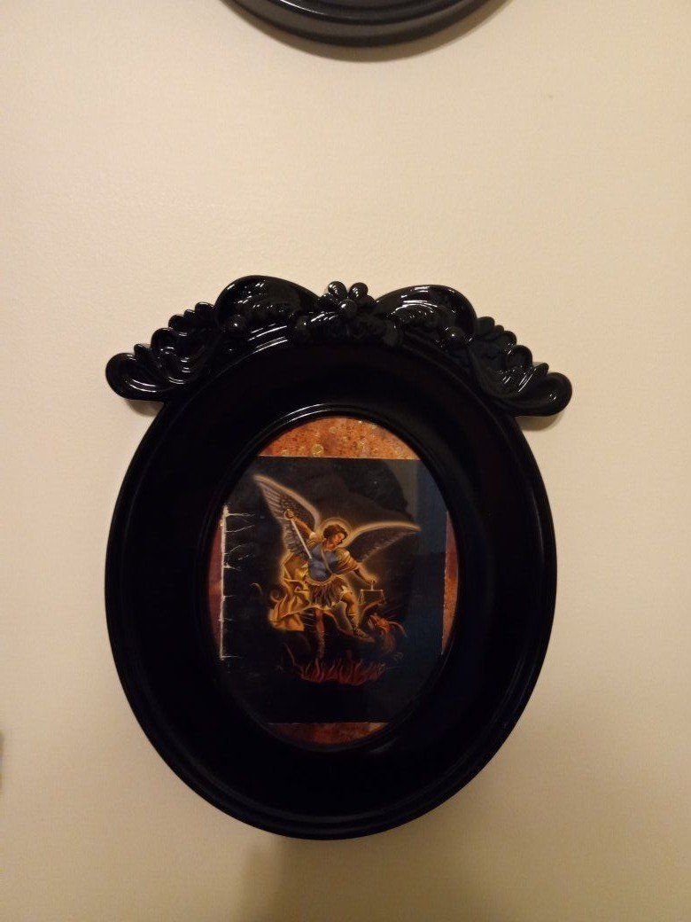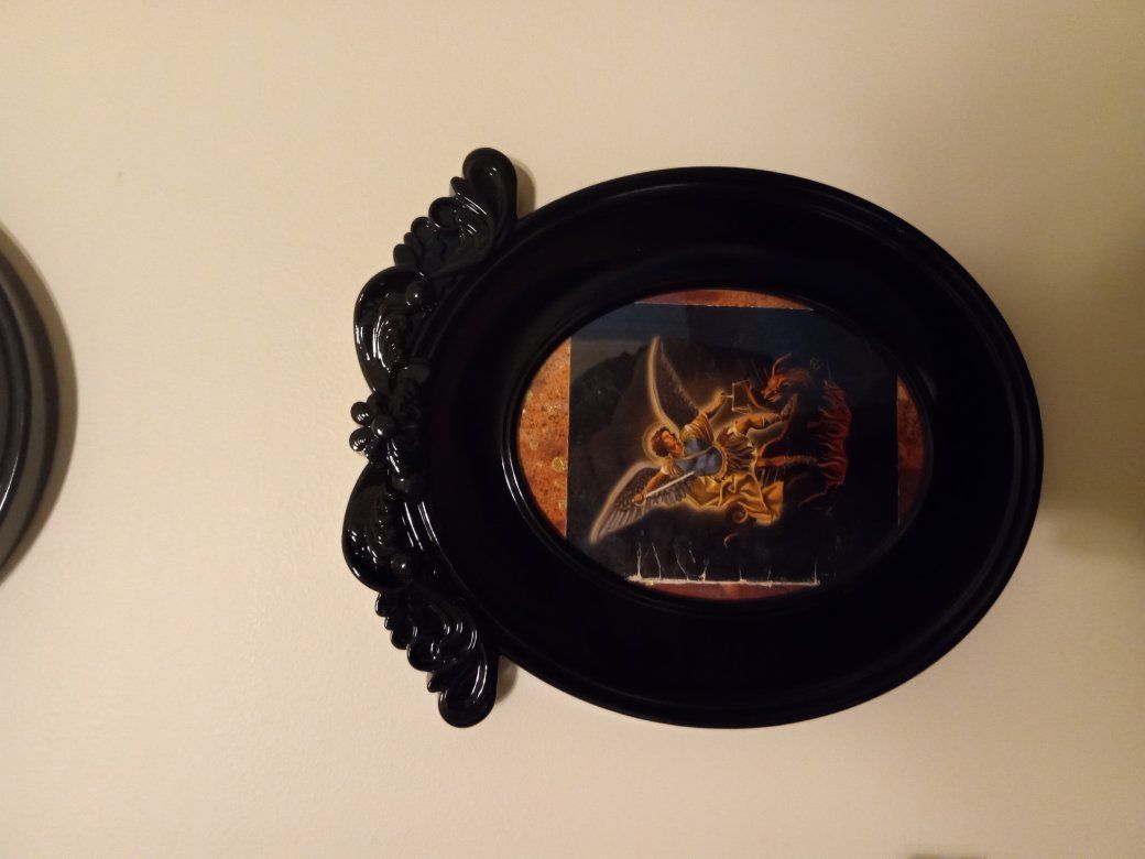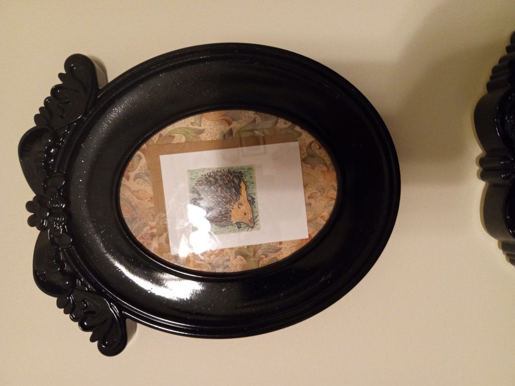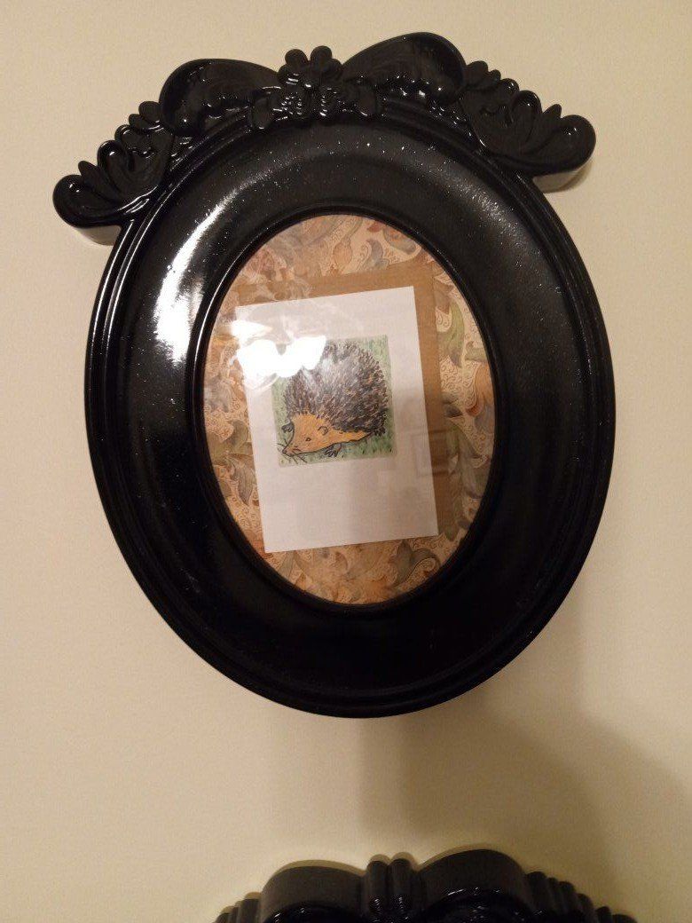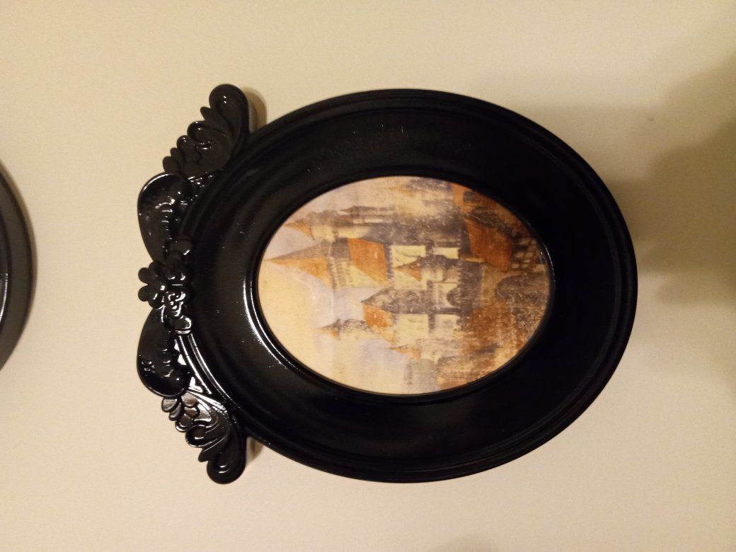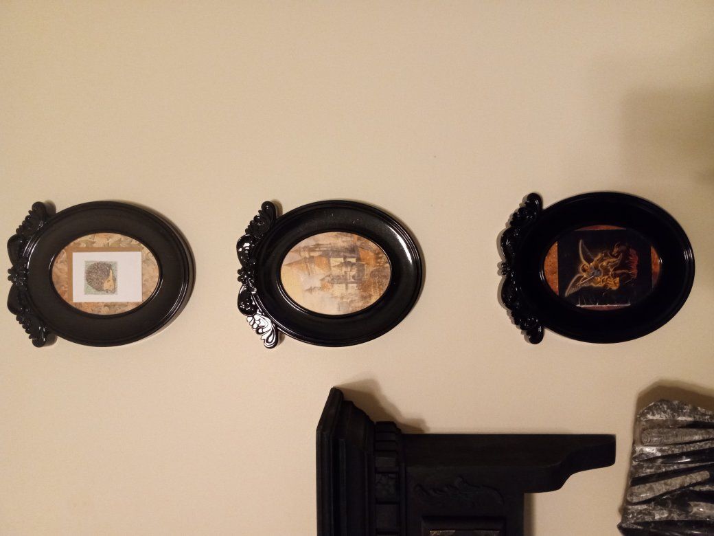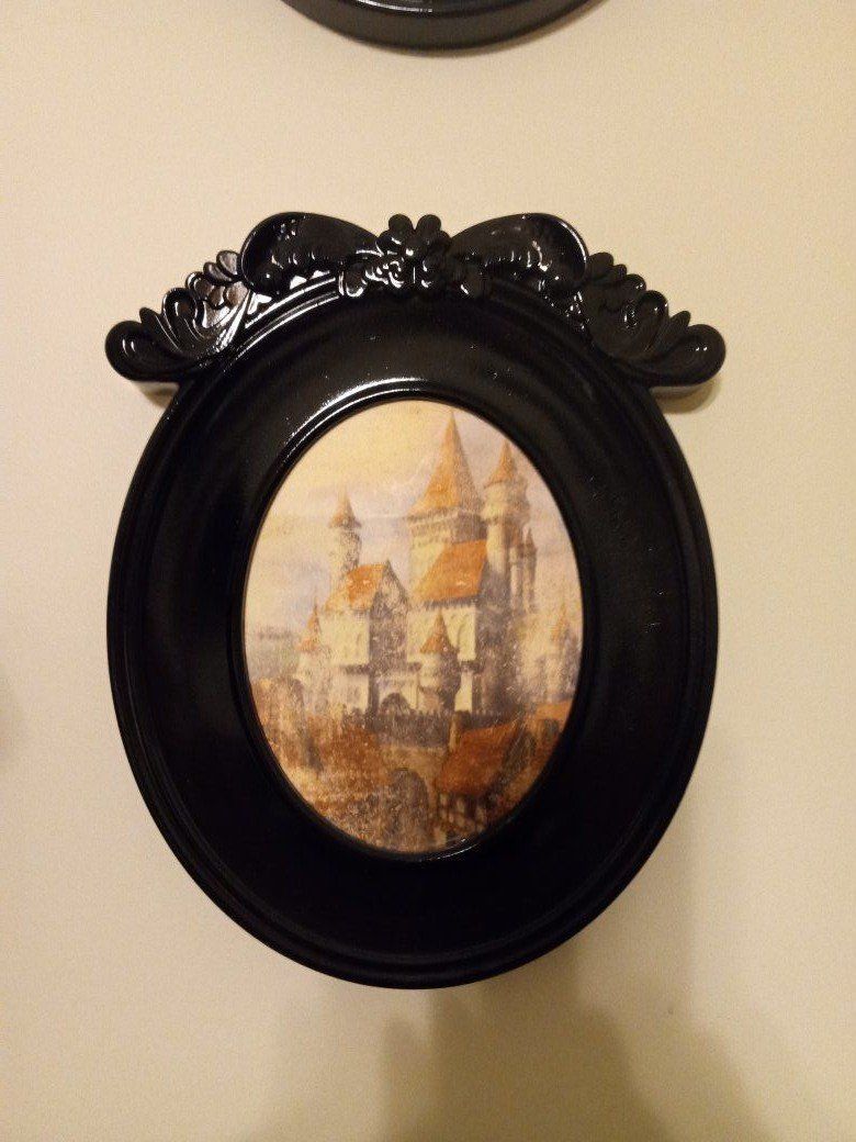 Venmo3 frames used to be white, they have been painted with shiny black paint and filled with lovely romantic gothic pictures. Perfect for your dark academia book nook