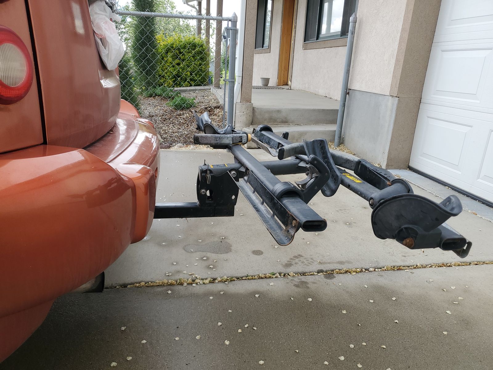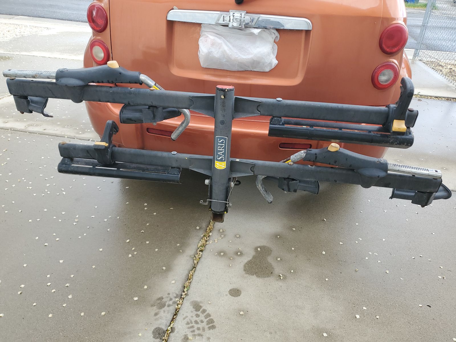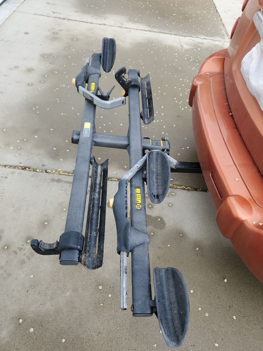 Saris 2 bike hitch mount platform rack in good condition. This rack fits 20 to 29 inch wheels with tires under 3 inches wide. 2 inch receiver tube size. Cash only.