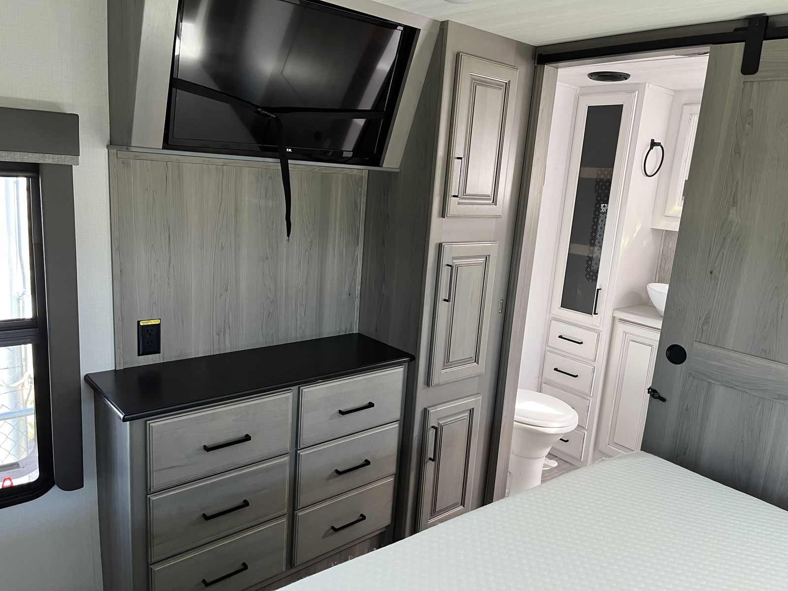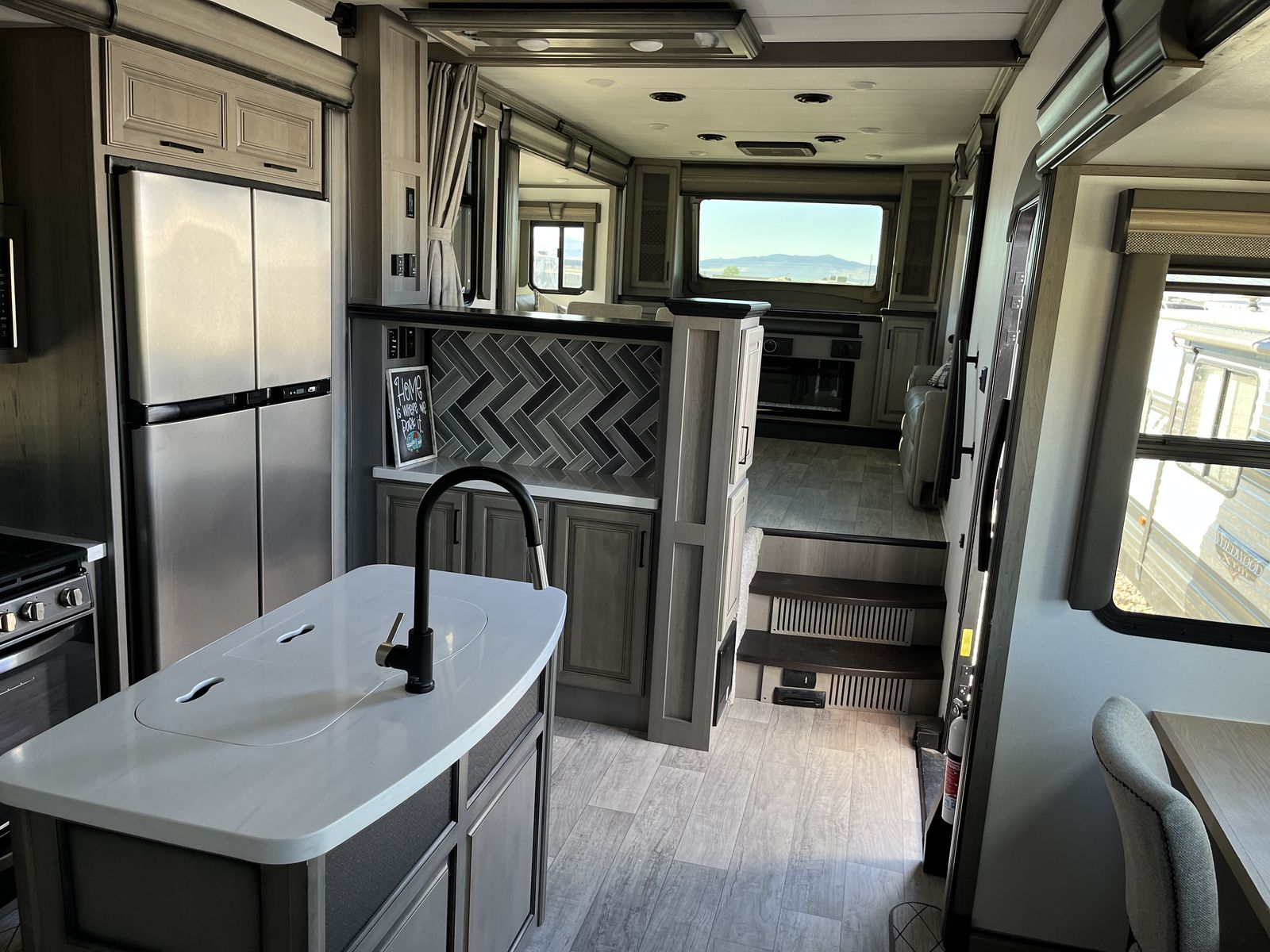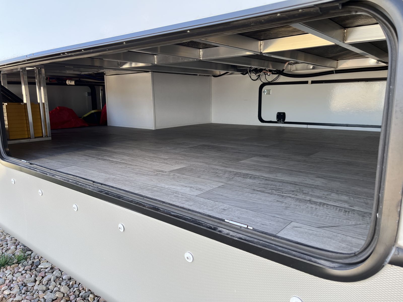 This trailer is a sweet setup for vacations or full-time living, Tons of "basement" storage.