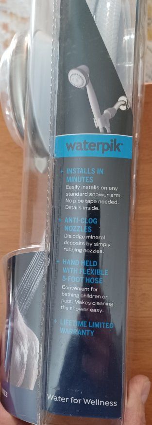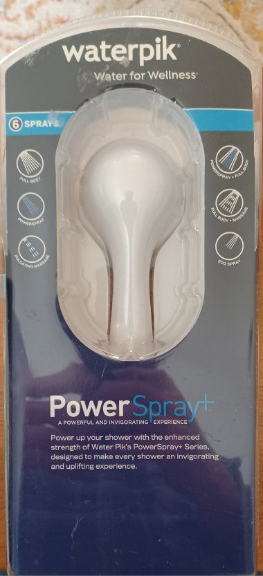 NEW Waterpik Power Spray 6 Invigorating Sprays. Hand held or hangs on the wall. Installs in minutes. 5 foot hose. New in unopened box. FCFS Cash appreciated.