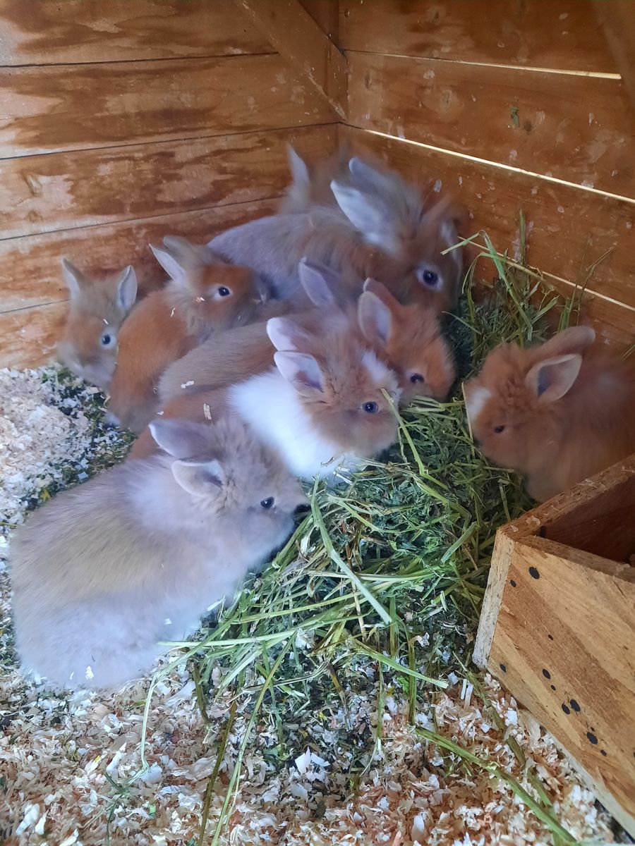 VenmoAvailable starting April 25th. We've got some baby bunnies available! I'm thinking they are a lionhead angora mix due to some babies becoming super fluffy. They are absolutely friendly and adorable. We've got 6 bucks/males and 2 does/females. 1 of the females is 11 weeks old from a different batch. The rest are 7 weeks old and looking for their furever homes! Please message me to reserve a time for pickup. They are all super loving and sweet, and have been held a lot so they are tame.