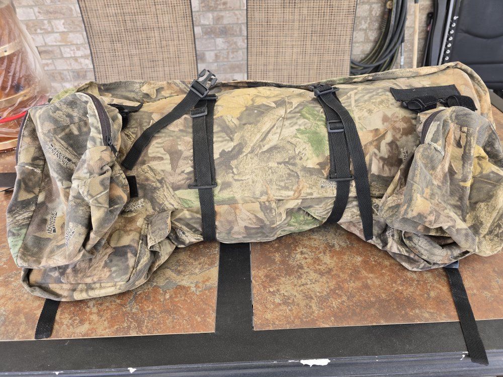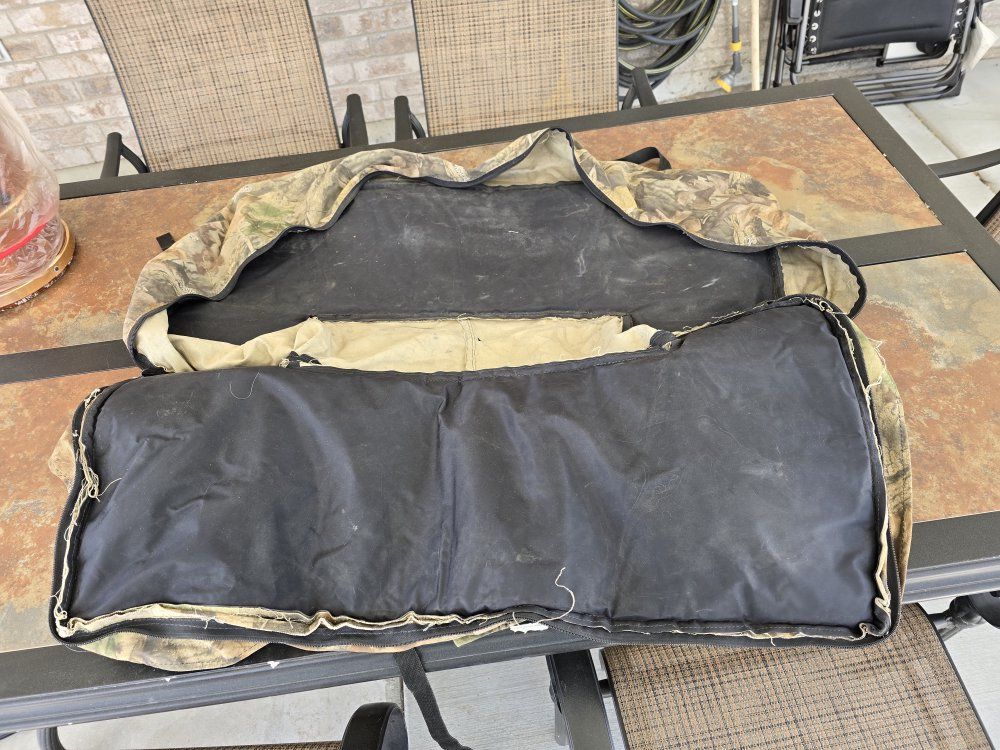 VenmoATV camouflage rear rack storage bag. It measures 36” across, 15” wide (front to back), 10” deep and it has two accessory pockets that attach with Velcro as well as additional straps for top tie downs. It is in good condition with just a couple of minor holes in it. I will include a nylon ATV cover that is in excellent condition free of charge. All for $50 or make a reasonable offer when you see it.