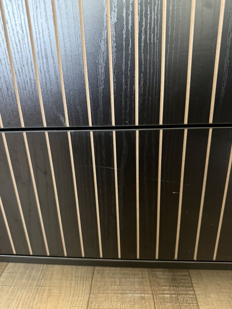 Condition: Brand new, recently assembled. It did arrive with a few minor cosmetic imperfections (see photos). They are barely noticeable. It doesn’t fit with the flow of my space like I thought it would.