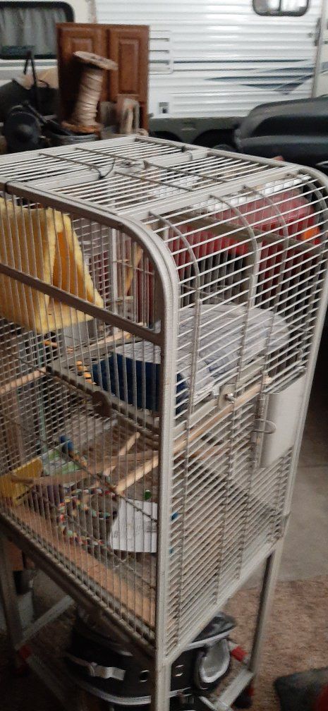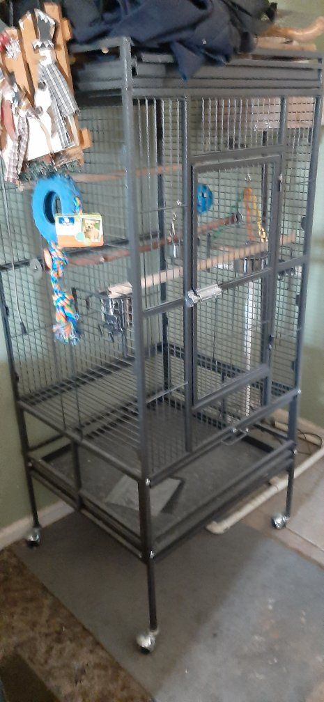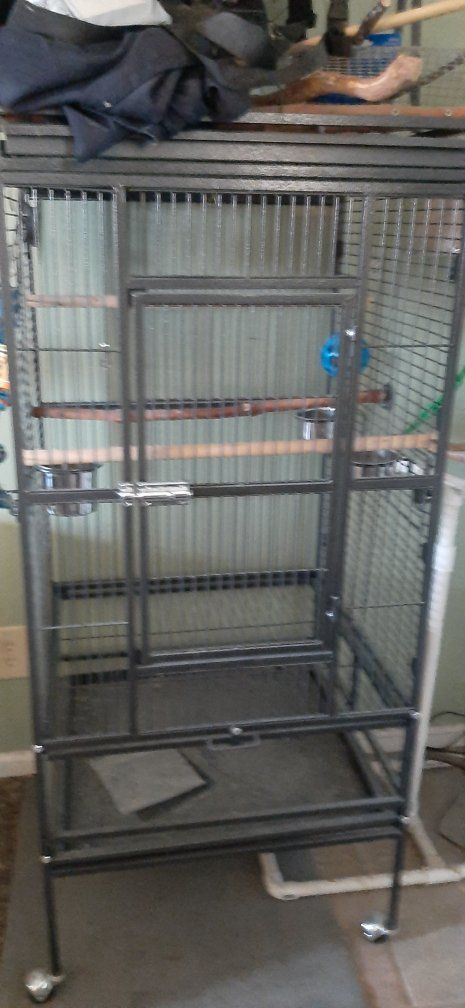 VenmoI have multiple cages available at varying prices, depending on your type/ size of bird. Allow me to see whether I have what may suit your birds needs. most of these are for smaller/ mid size birds, 1/2" bar spacing. This white one is a nice smaller one, roughly 18/ 20" square, while roughly 4ft tall with the legs/ stand. It mat take some minor adjustments. Though the top is accessible to open if/ as desired. The larger black cage is nearto 2 ft square x roughly 4ft tall. Both of these can work with anything from finch, parakeets, cockatiels, conures and maybe a few other mid size range birds. I have a few other smaller cages as well. While I have 3-4 main ones I need to sell before summer as possible. I'm downsizing my flock, cleaning out the garage, no longer leaving room for them all. Thank you for any, and all interest. If you like a bigger discount, consider buying a pair of cockatiels. Or if you bring friends buying the birds, work out a deal with the cages as well. [Smaller white cage $100, Larger black cage $200- or more bargain when buying the cockatiels or conure pair, or if like both cages together].