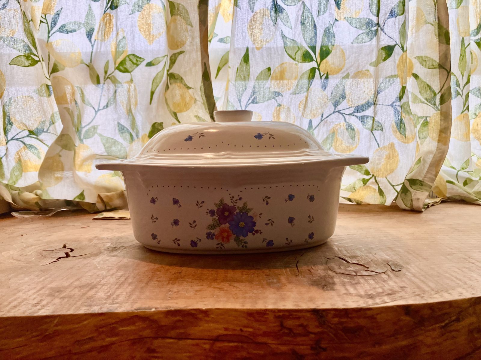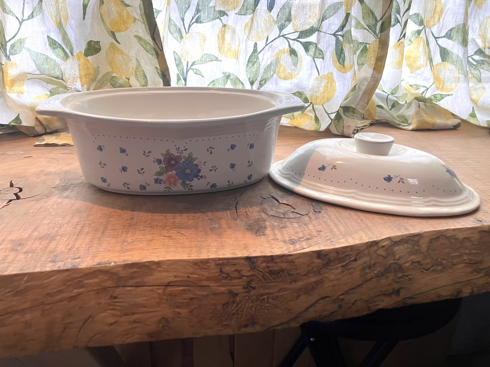 Vintage baking casserole dish never been used opened it to take pictures in great shape.