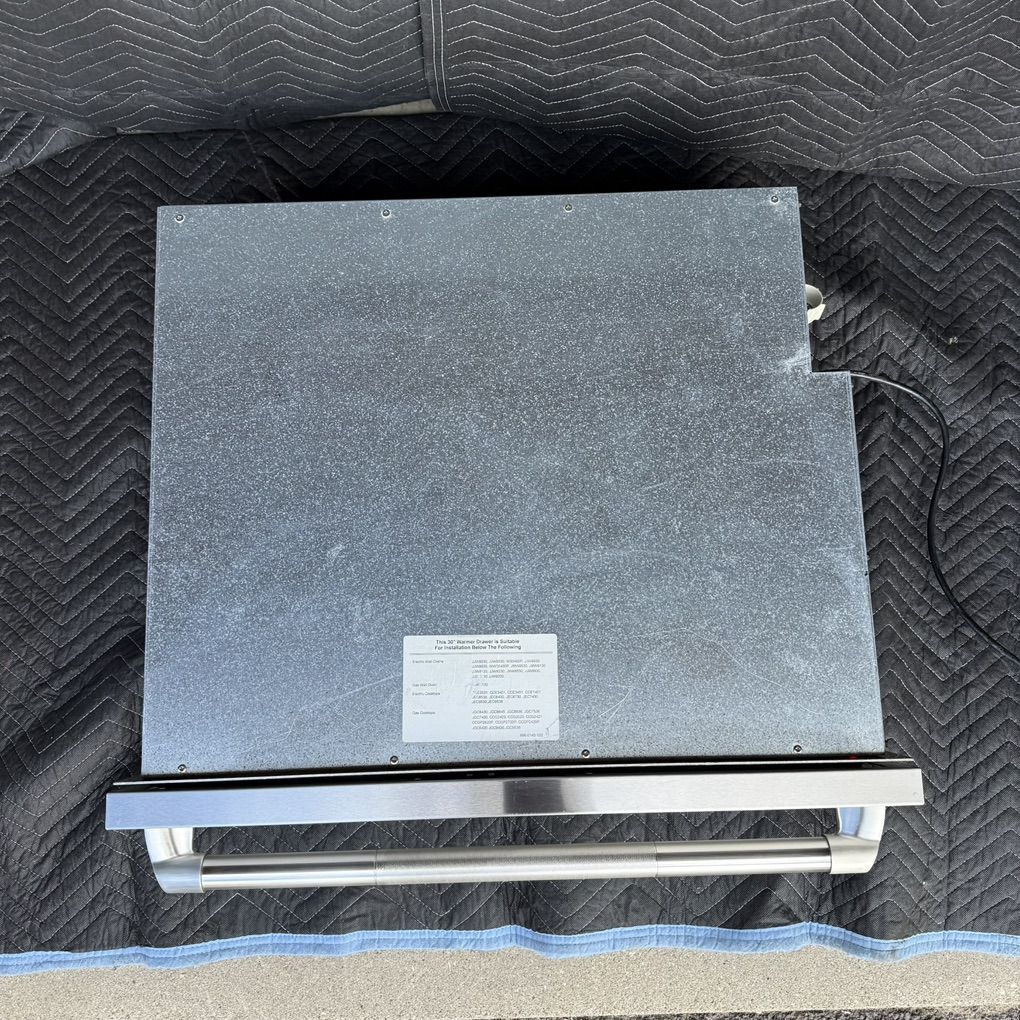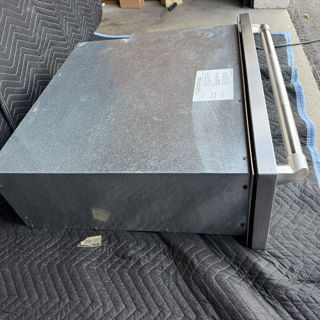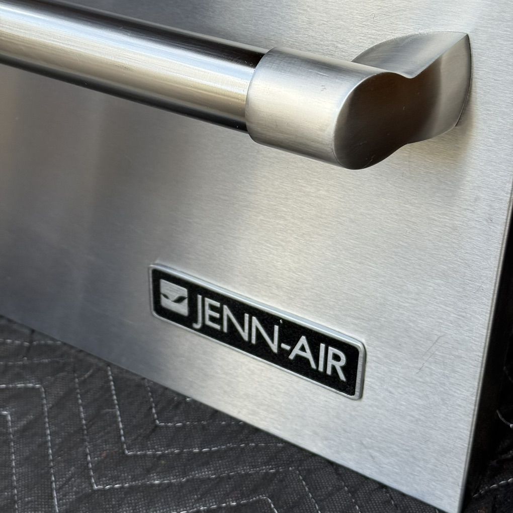 Used Jenn Air 30 Warming drawer, stainless steel temperature control. Model: JWD7030CDX. Serial: 10009595GV. Made in USA