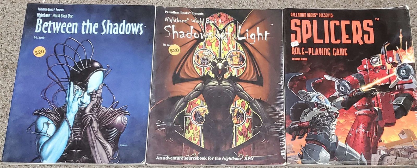 PayPalThis collection of 28 books includes entries from the popular Palladium role-playing games Rifts, Nightbane, and Heroes Unlimited, as well as the base game manuals for Heroes Unlimited and Splicers. These books provided my friends and I hundreds of hours of fun back in high school and college. Now I want them to go to players who will enjoy them as we once did. Note: All Palladium Game's books are intended to be compatible with each other with minimal conversion.
