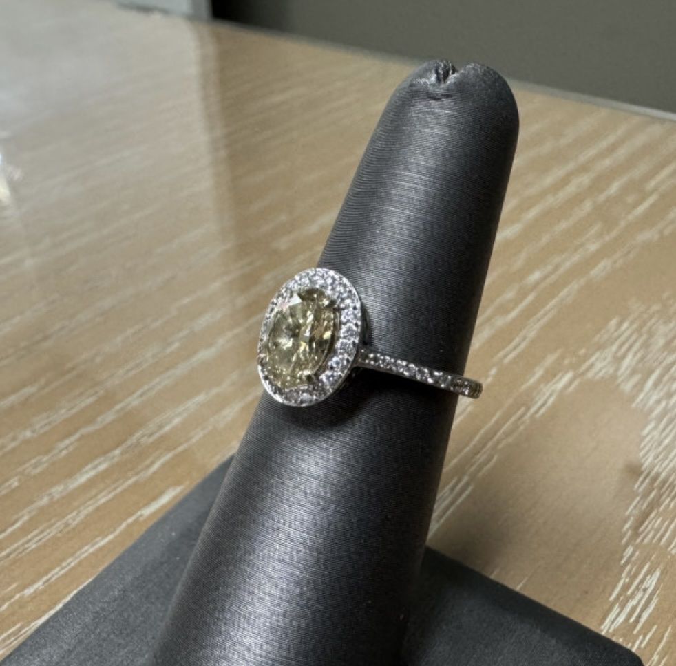 CashAppVery pretty 18K Gold ring with 1.1 carat Fancy Yellow Oval natural diamond set in 48 round brilliant cut natural diamonds, in pavé band and setting OBO