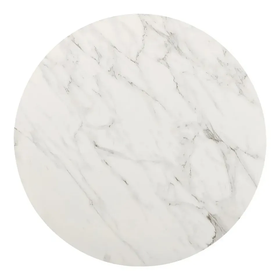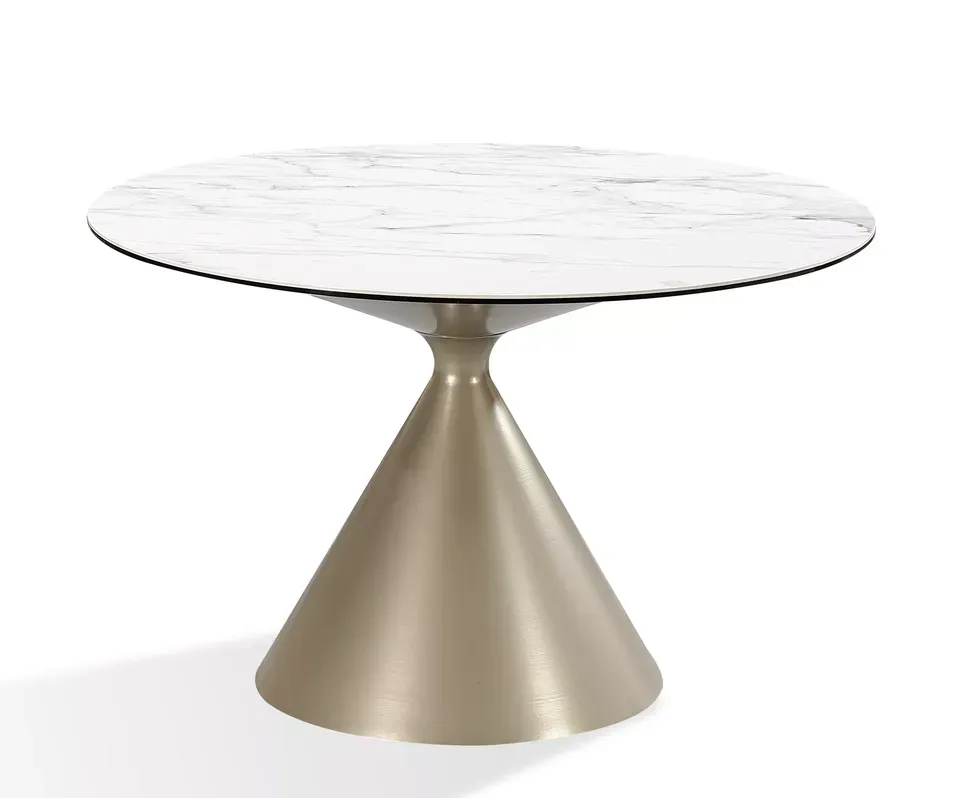 Modern round dining table with stone top and elegant metal base β perfect centerpiece for a stylish dining space