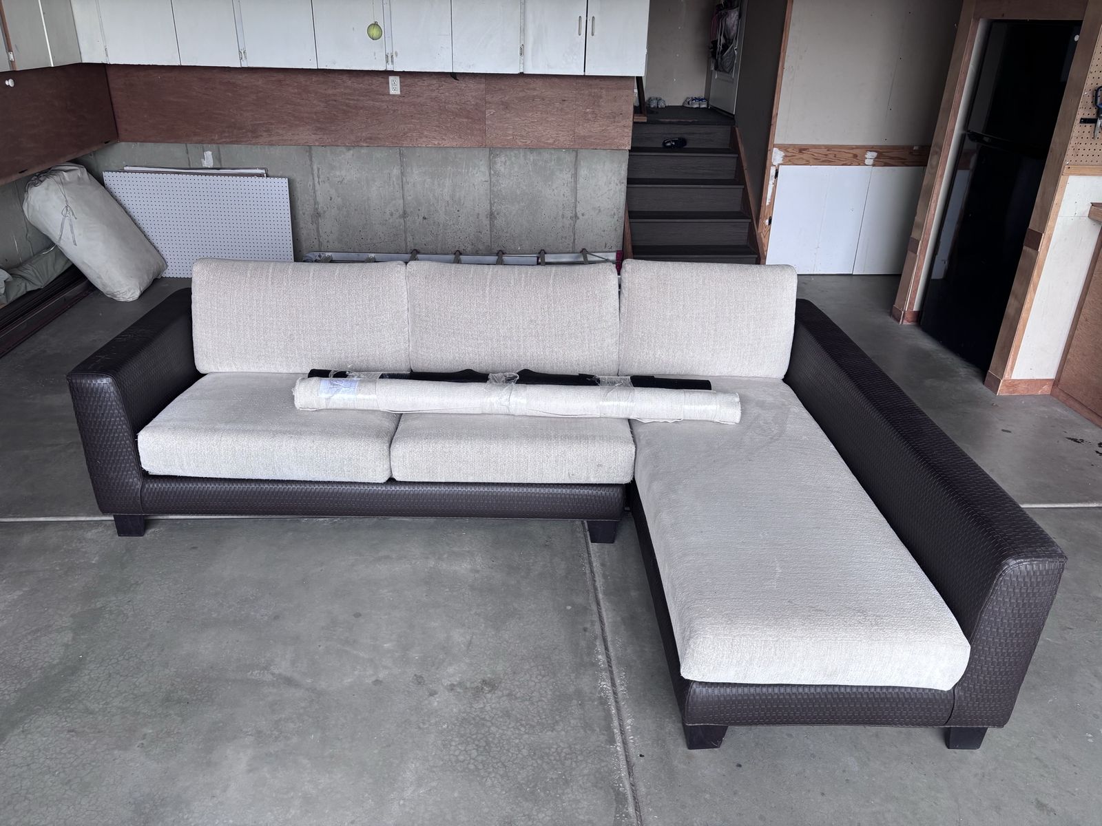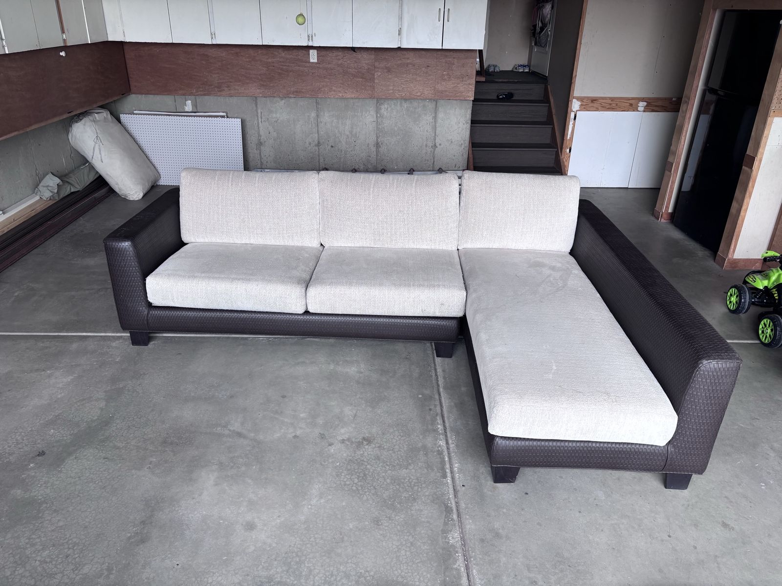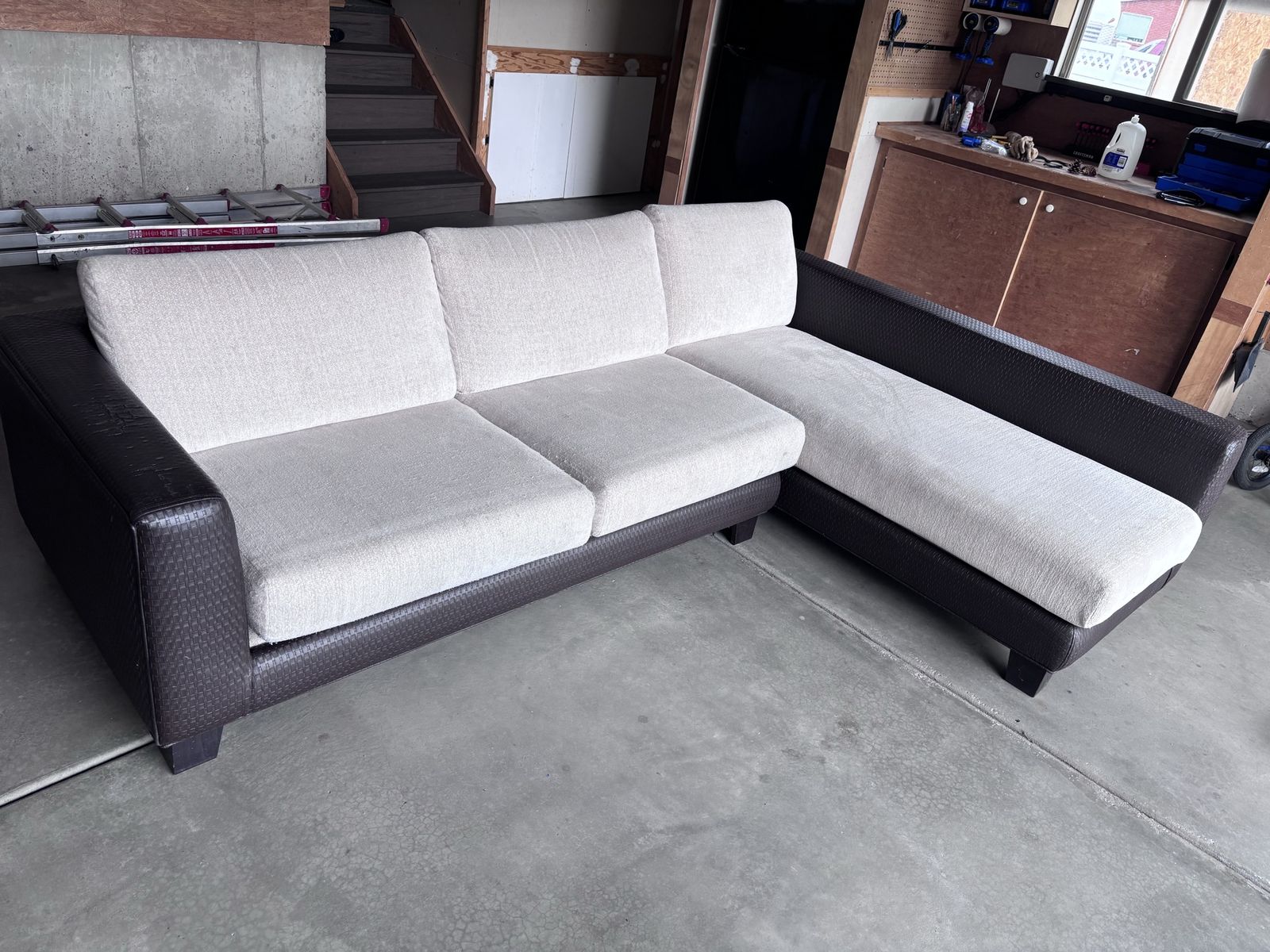 VenmoL-shaped sectional in good condition with extra fabric included for optional arm reupholstery. Great piece as-is or for a simple refresh. Pet-free, smoke-free home.