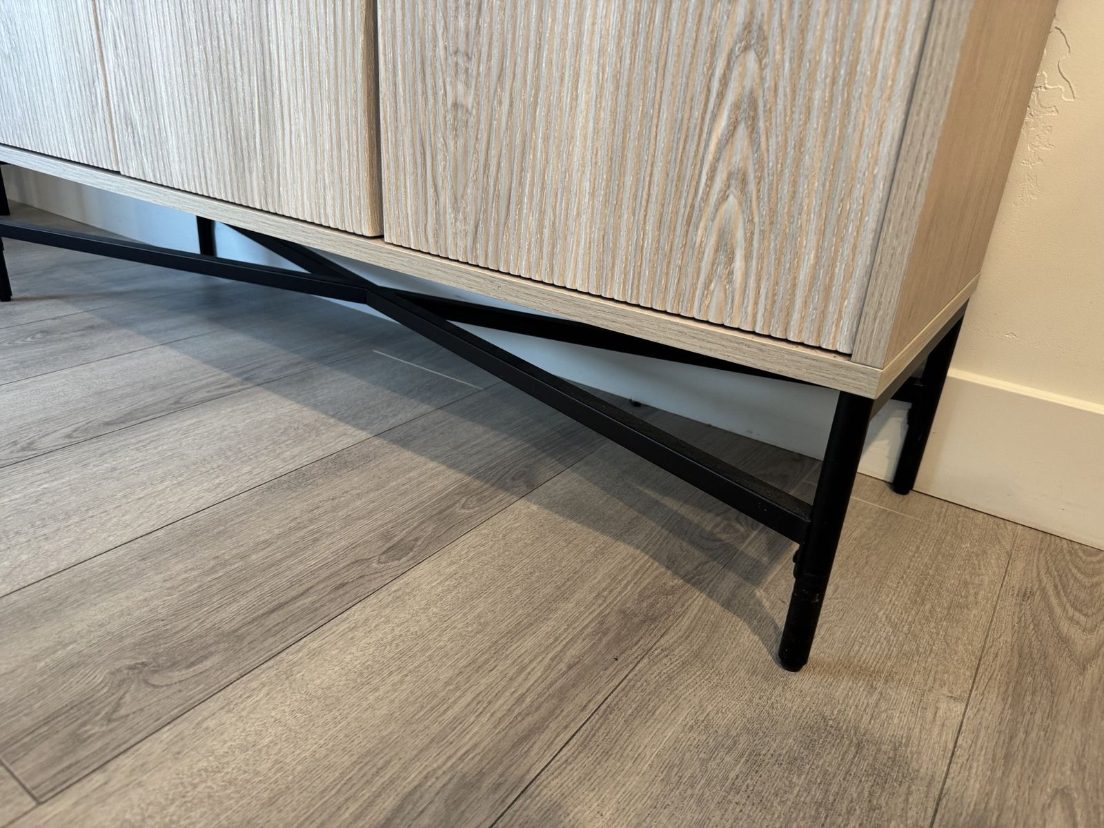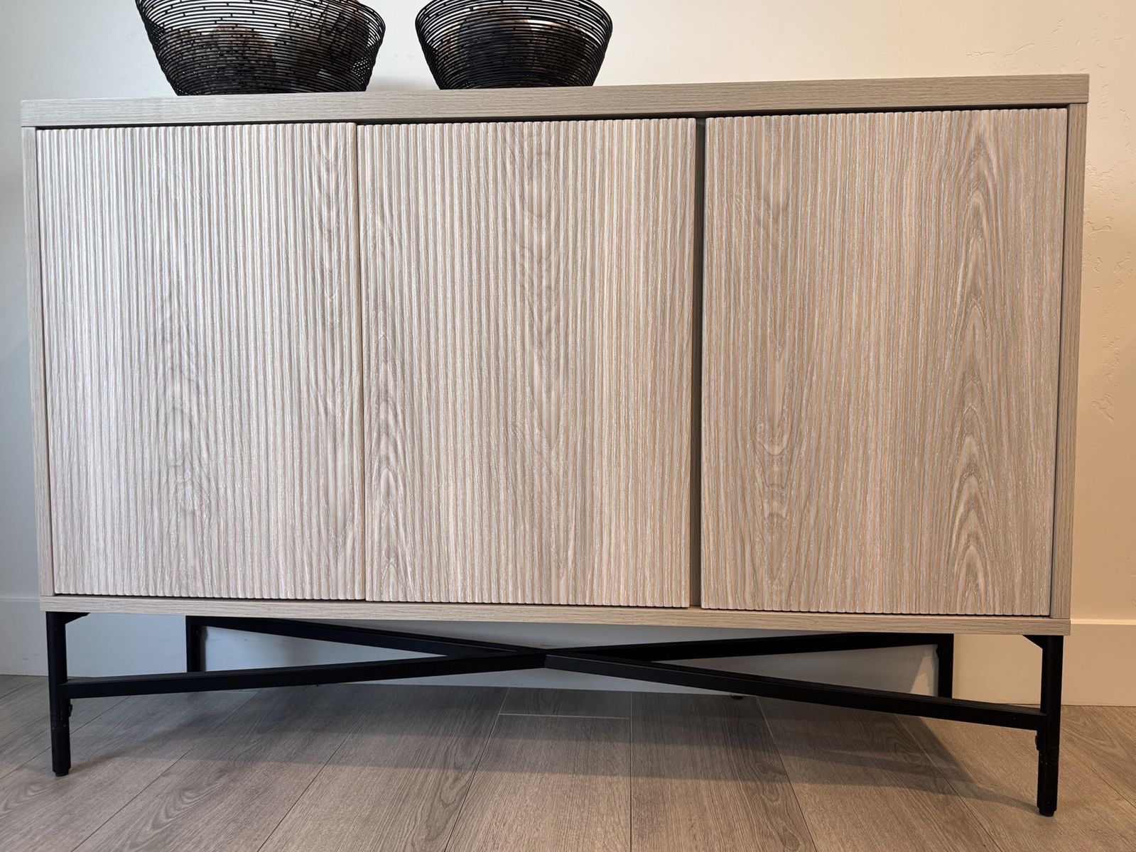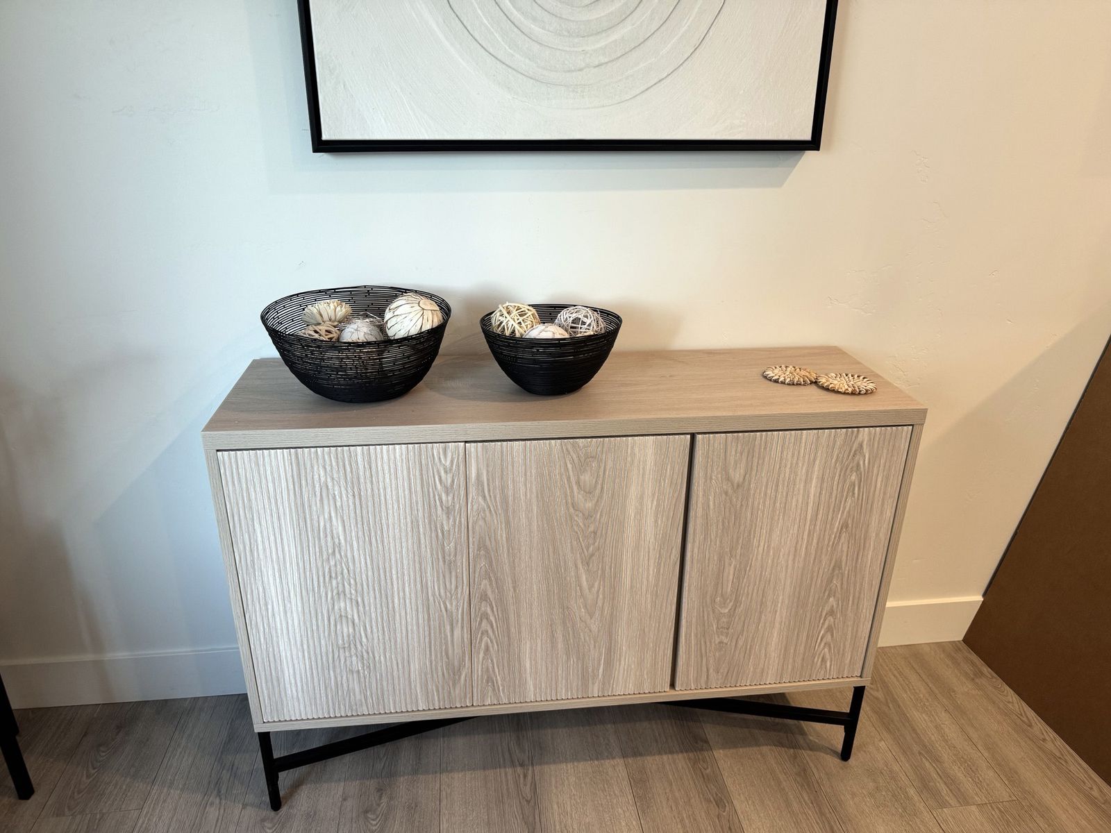 Sideboard with Adjustable Shelves & Cable Management. Alder White Scandinavian Storage Cabinet for Dining Room or Living Room. Size: 32'' H X 47.5'' W X 14'' D