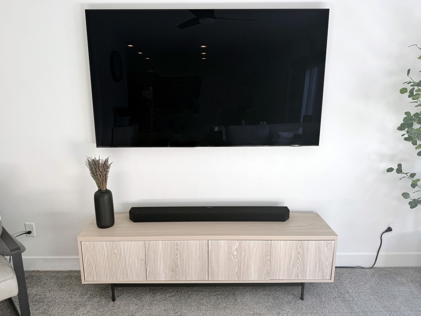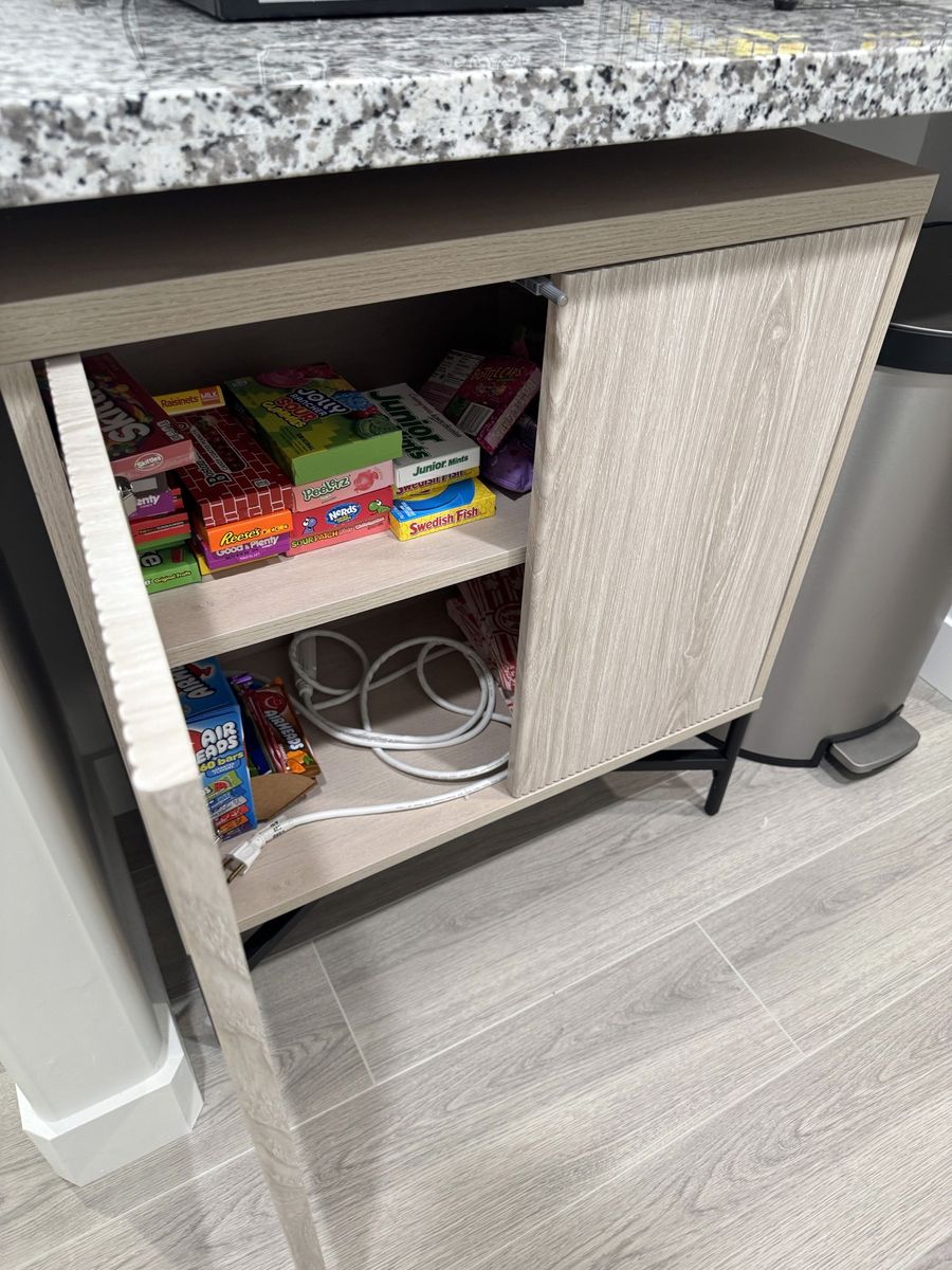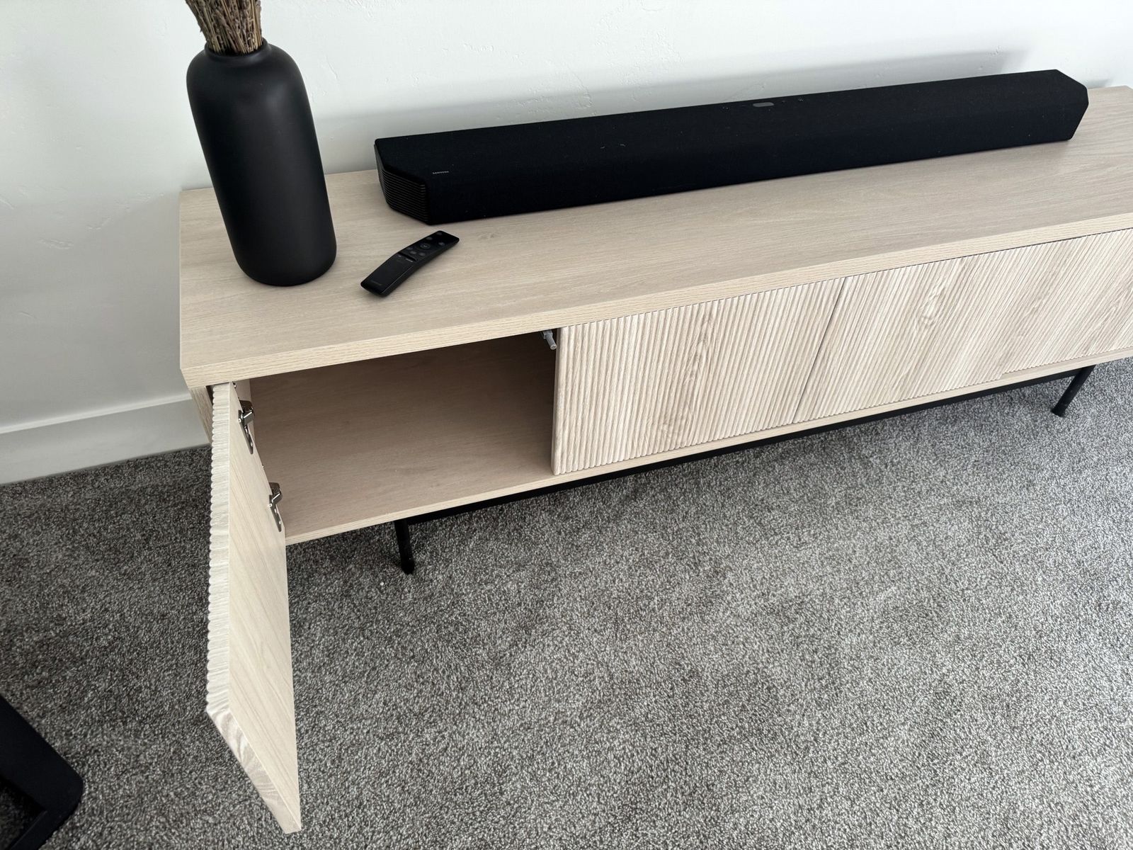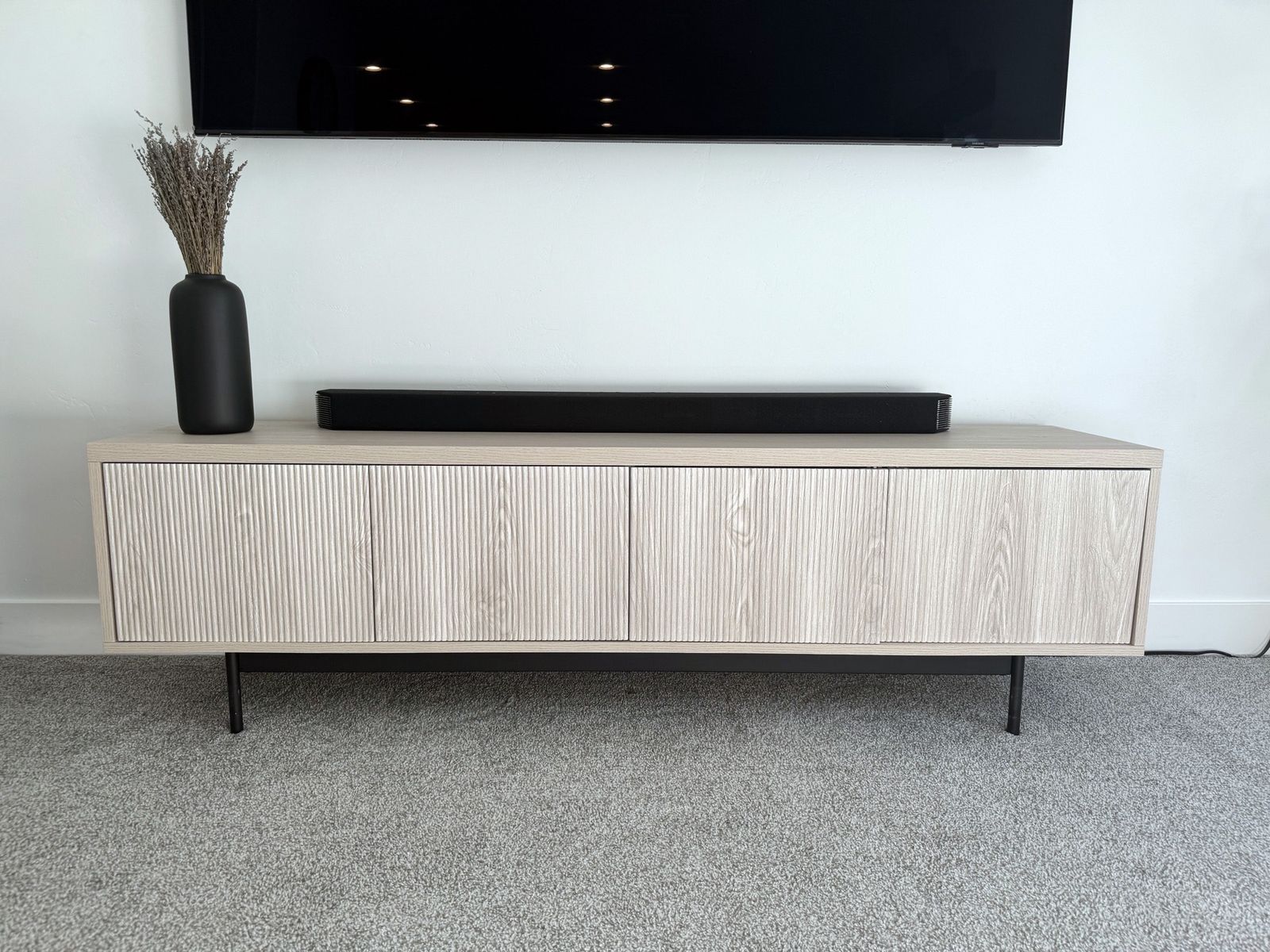 Sideboard with Adjustable Shelves & Cable Management. Alder White Scandinavian Storage Cabinet for Dining Room or Living Room. Size: 32'' H X 47.5'' W X 14'' D