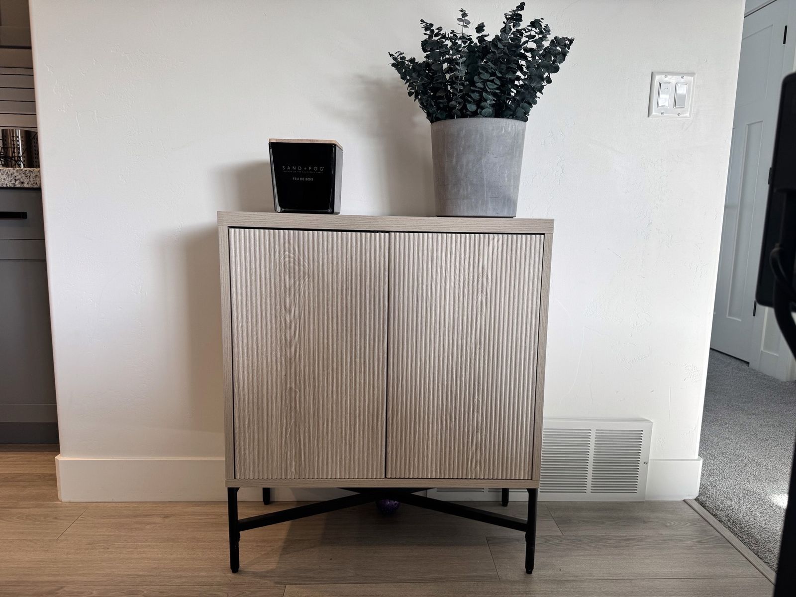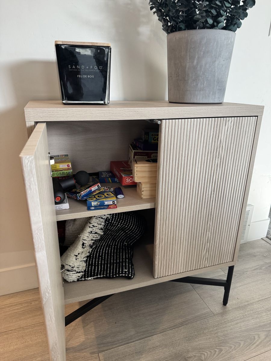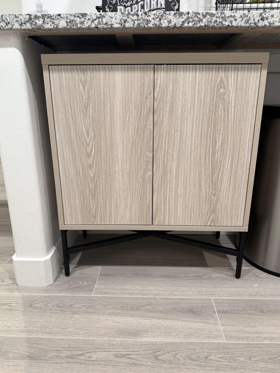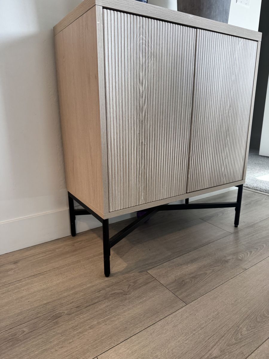 (2) Accent Cabinet 28 in. Alder White Rectangular with Fluted Doors & Adjustable Shelves. Size: 32'' H X 28'' W X 14'' D