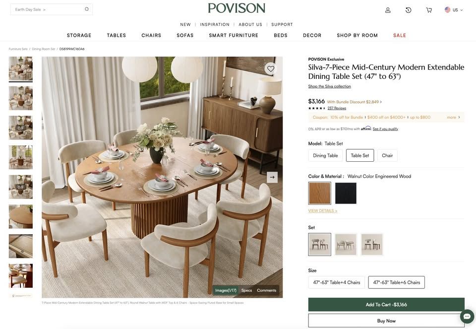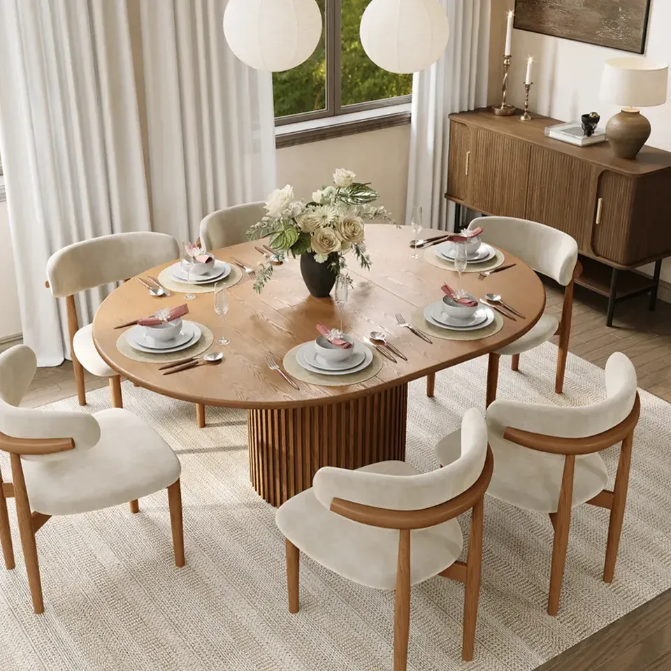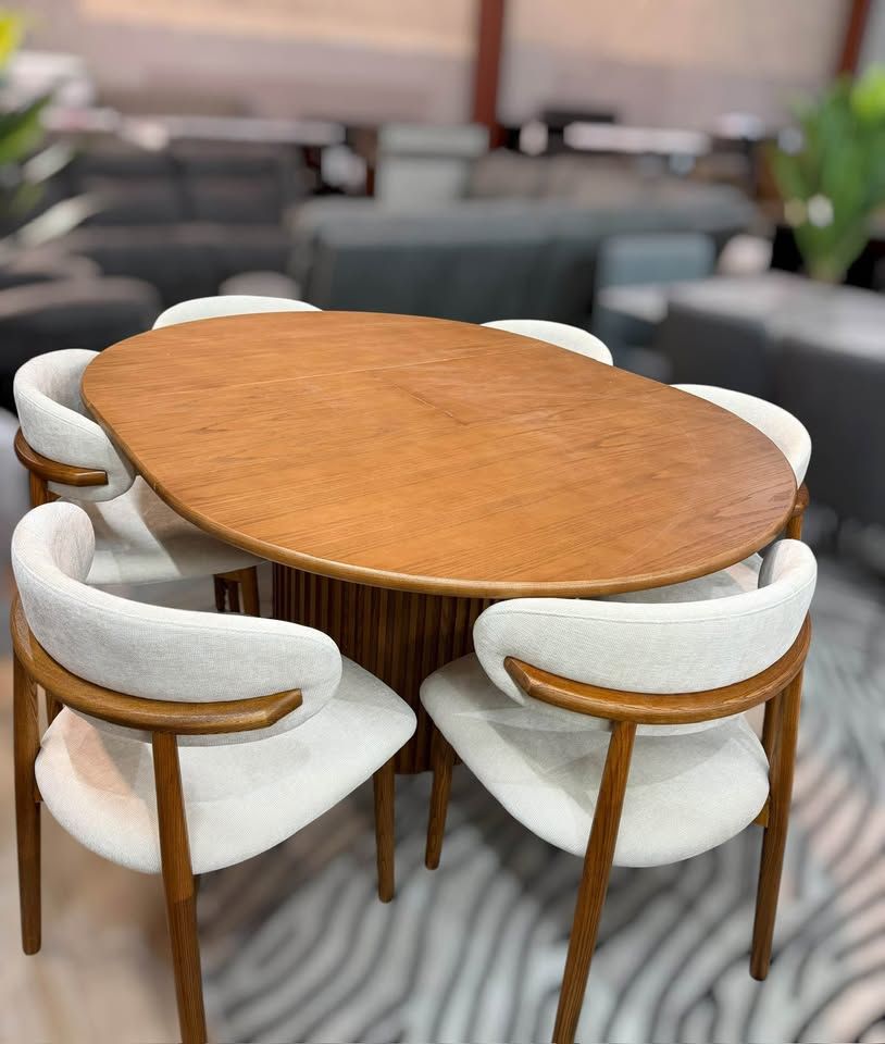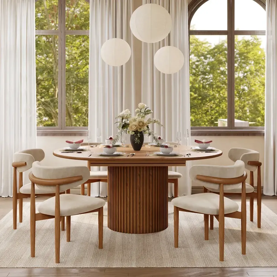Why this set stands out Extendable table (47” 63”) Seats 4–6 people comfortably Elegant fluted base design Premium wood finish (walnut tone) Includes full dining set