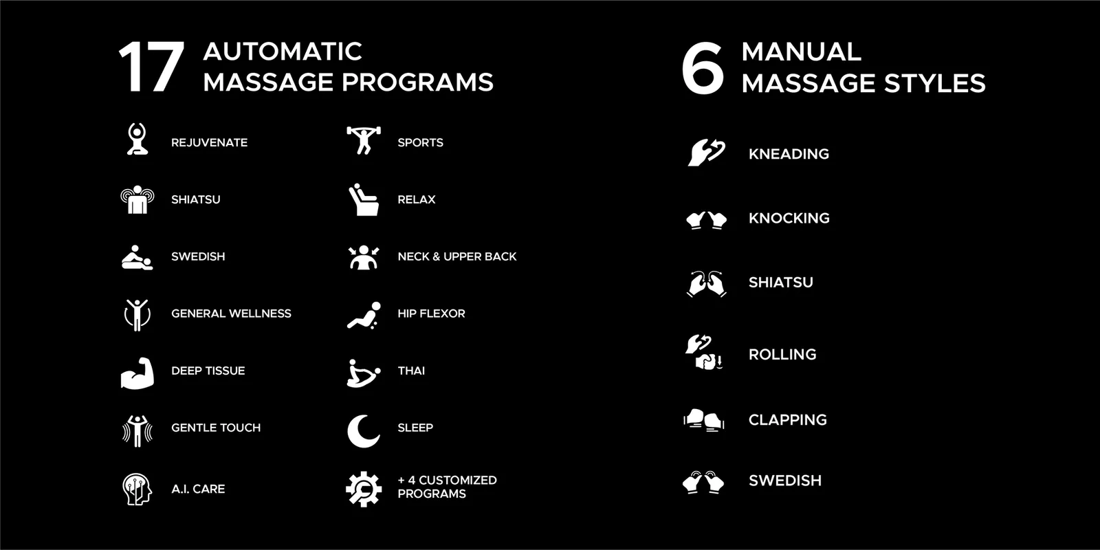 17 Auto Programs & 6 Massage Types