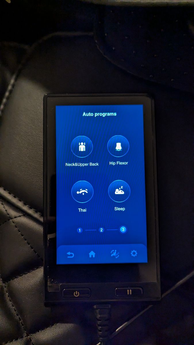See Costco link for all the features: https://www.costco.com/p/-/osaki-os-3d-aspire-massage-chair/4000252751?langId=-1&preselect=color%3Ablack
