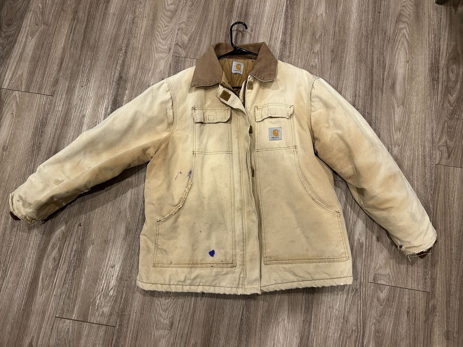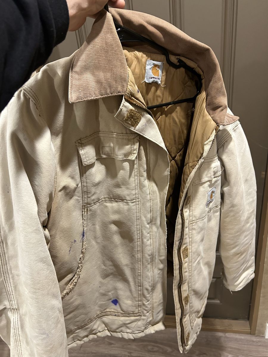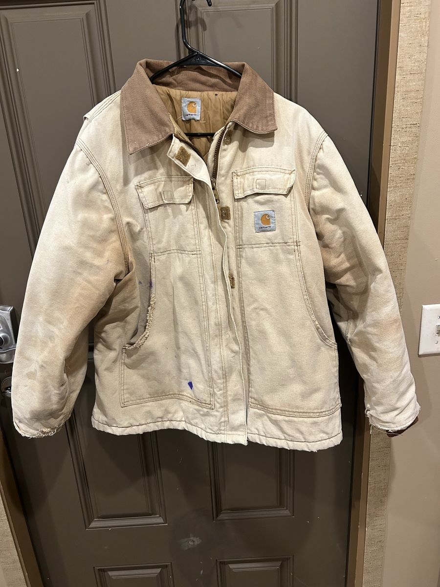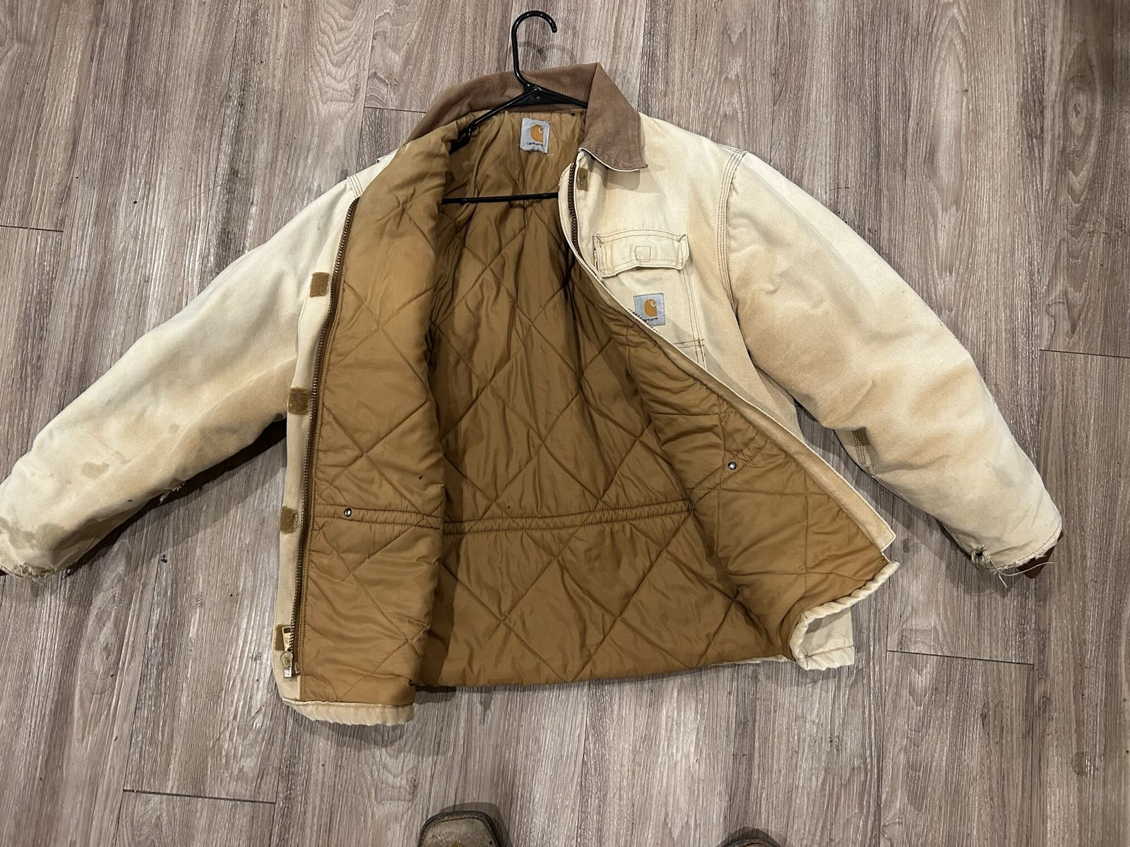 CashAppQuilt lined. Fits like a large. Has some stains and small tears. Overall really good condition. OBO.