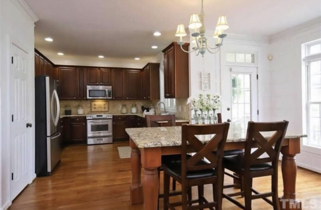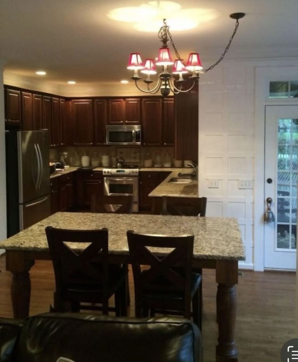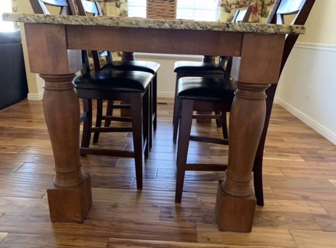 VenmoDouble function custom‑built dining table/kitchen island with a full granite slab top and solid carved wood legs. Extremely sturdy and well‑made from a Pinterest picture. It was my dream table but we moved! The granite alone was $1,200 and the legs were $400 each. Seats 4–6 comfortably. I was quoted 6k for labor and materials but my builder friend made it for less. In today's money it would cost 8k for materials and labor. Excellent condition.