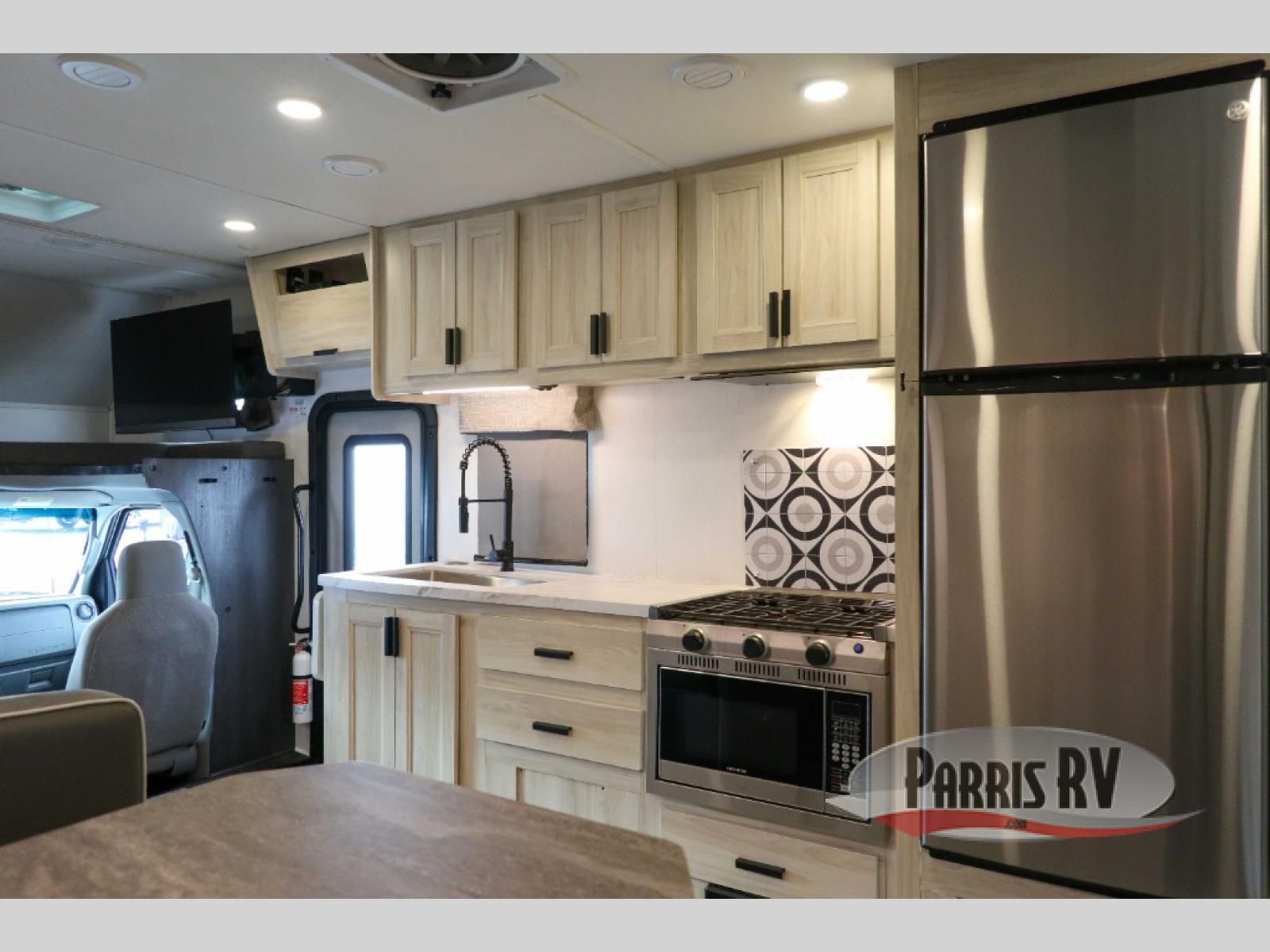 Each Forest River Sunseeker LE Class C gas motorhome comes with the LE Premier Package for your benefit! This package includes great features like backup/sideview cameras with rearview mirror monitor, a fiberglass front cap, an in-dash premium sound system with Bluetooth, a Winegard Air 360+ antenna with preparation for Gateway 4G Wi-Fi, toppers for the slide outs, and a 15,000 BTU ceiling-ducted, ultra-quiet roof air with heat pump. All of these premium features rest on a Superlite composite substrate, 2"-thick gel-coat sidewalls with lightweight composite waterproof material, block-foam insulation, and a fiberglass roof. There is a satellite/cable connection, a 30,000 BTU furnace, a Maxx Air multi-speed power fan, and black-out roller shades.