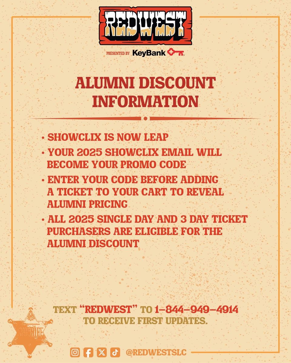 Tickets are on sale at 10 am today! You can use my code to get yourself a free Redwest tote you can pick up from guest services! If you bought tickets last year apply for the alumni discount!