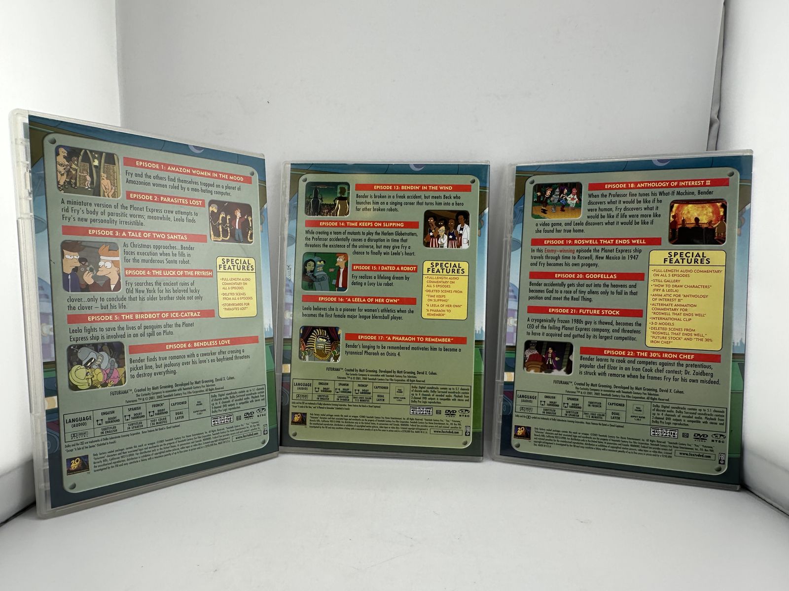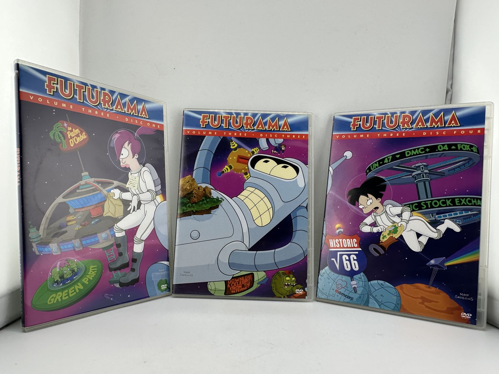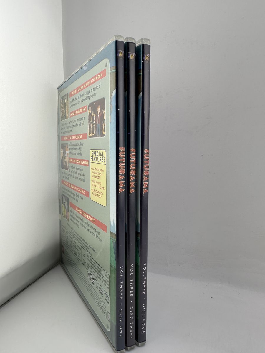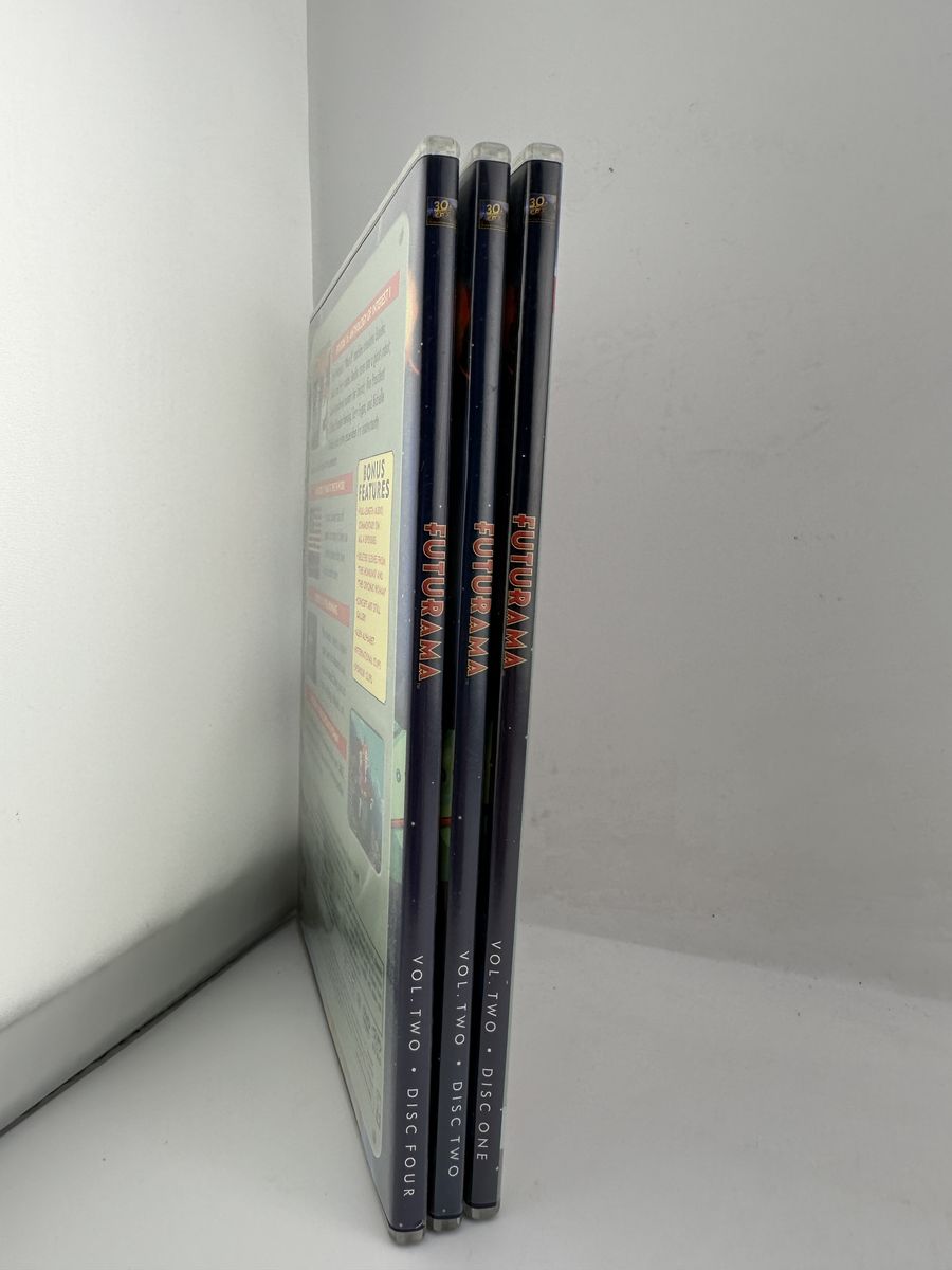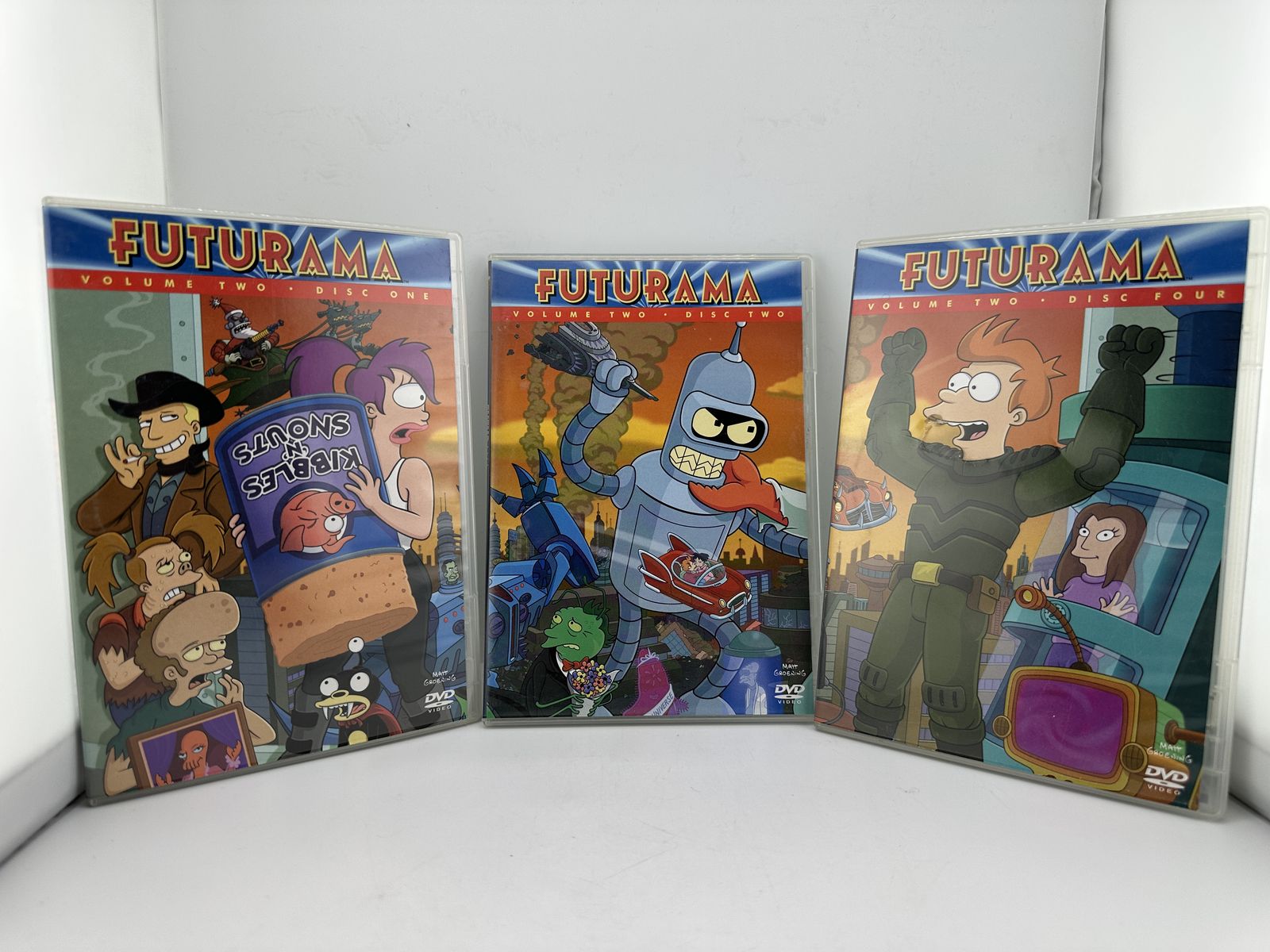 ApplePayGreat lot of Futurama DVDs featuring Volume 2 and Volume 3 discs. Includes 6 discs total with classic episodes from the hit animated sci-fi comedy created by Matt Groening. Perfect for collectors, fans, or anyone looking to build out their set at a great price.