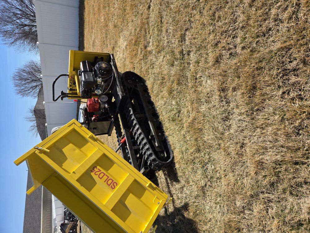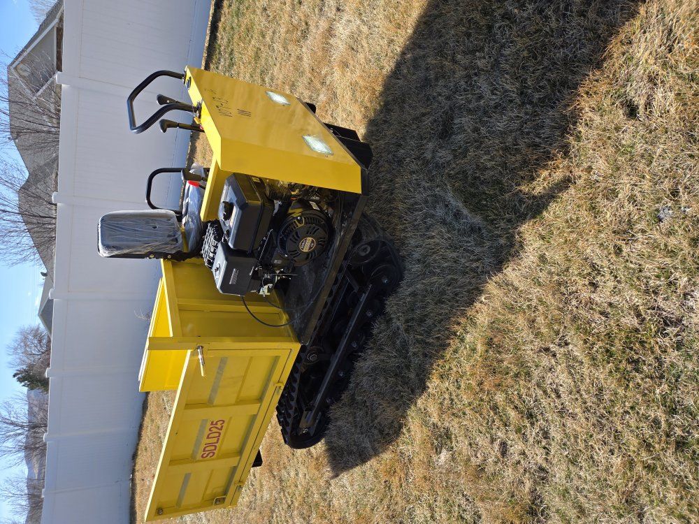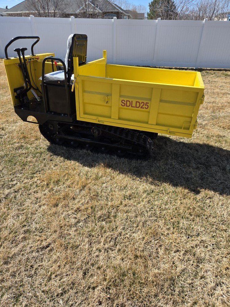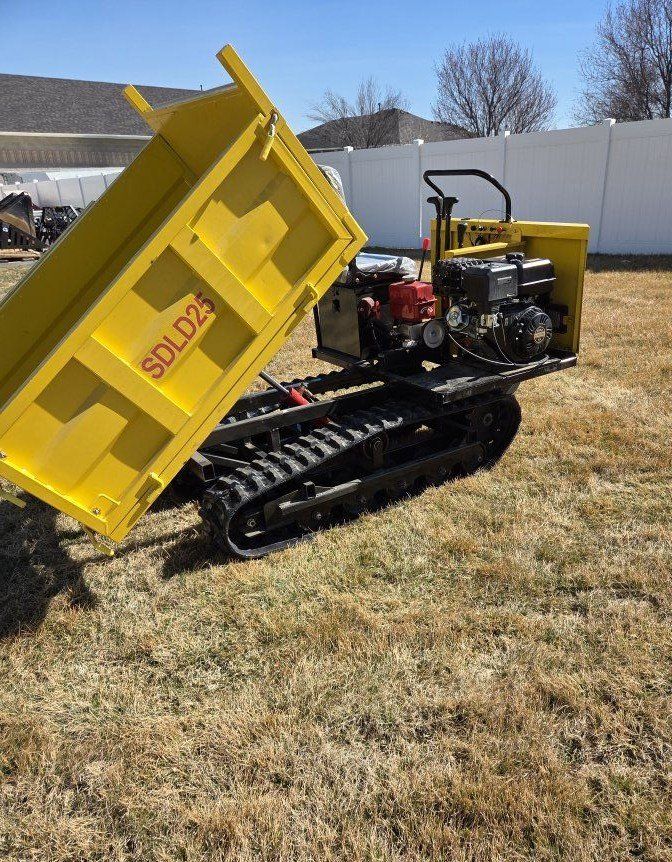 LAST ONE AVAILABLE. 2026 SDGRAND SDLD25 1.5 ton Mini Crawler Dumper (Unused). 15hp gas motor, 3 speed transmission, hydrolic dump bed, 9" rubber tracks, bed panels can be removed, horn, work lights.