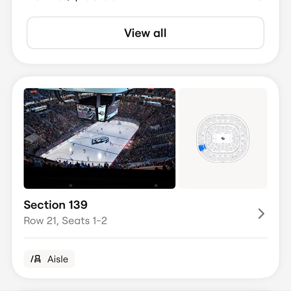 Venmo2 tickets to Mammoth vs. Vegas Golden Knights playoff game 6, round 1. Section 139, row 21, seats 1-2 Single-goal view Friday, May 1st. $325 for the pair, $165 each