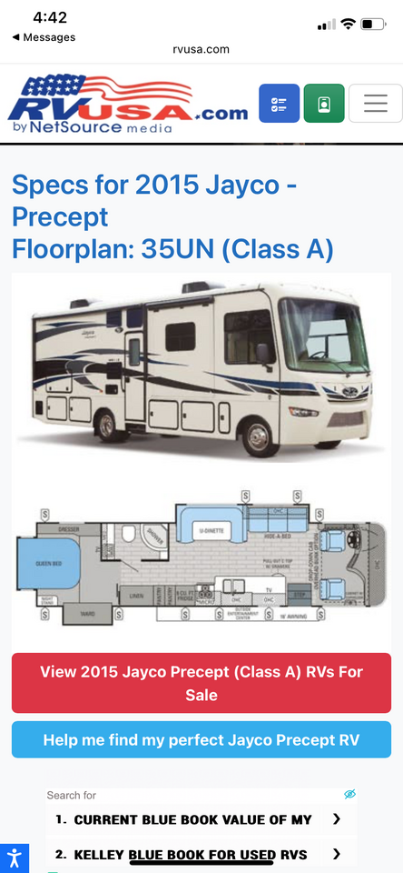 2015 Jayco Precept 35UN Class A V10 – LOW MILES