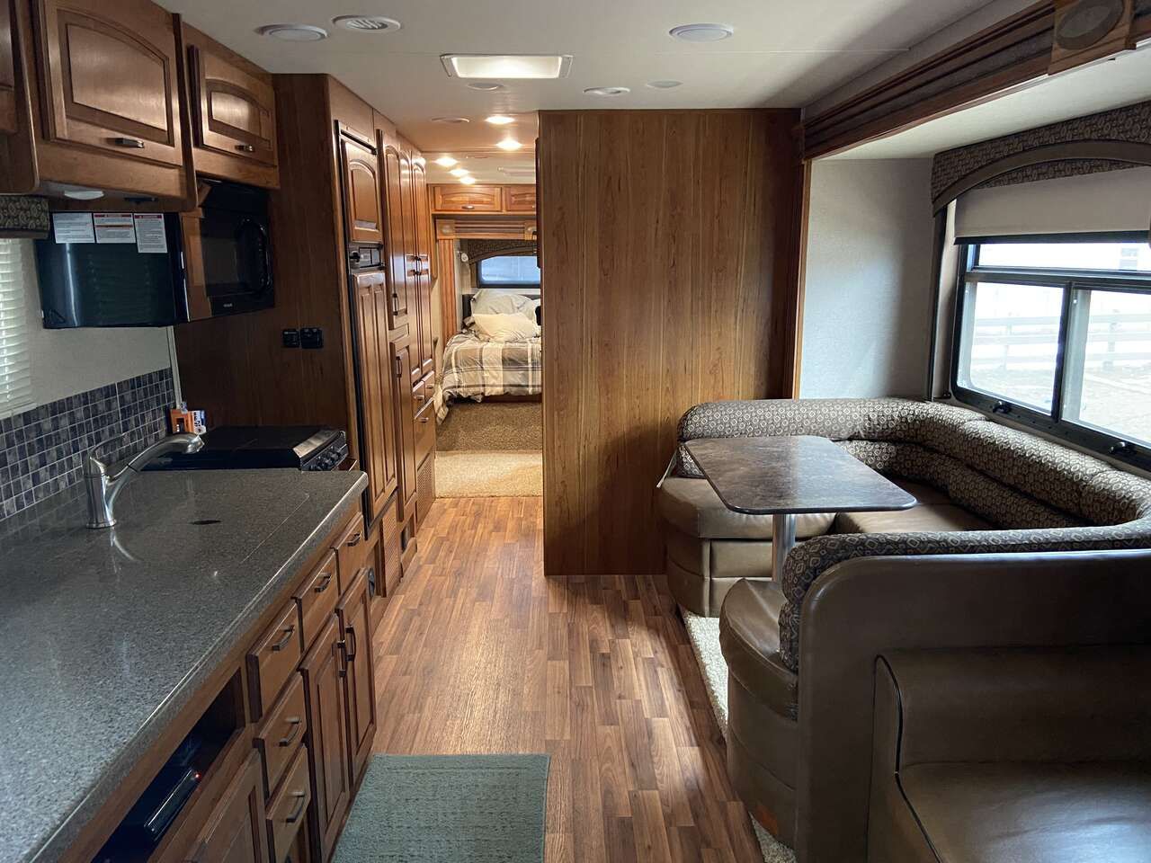 Sleeps 8 - Master queen bed, full bed over driver’s seat, couch and kitchen table turn into beds